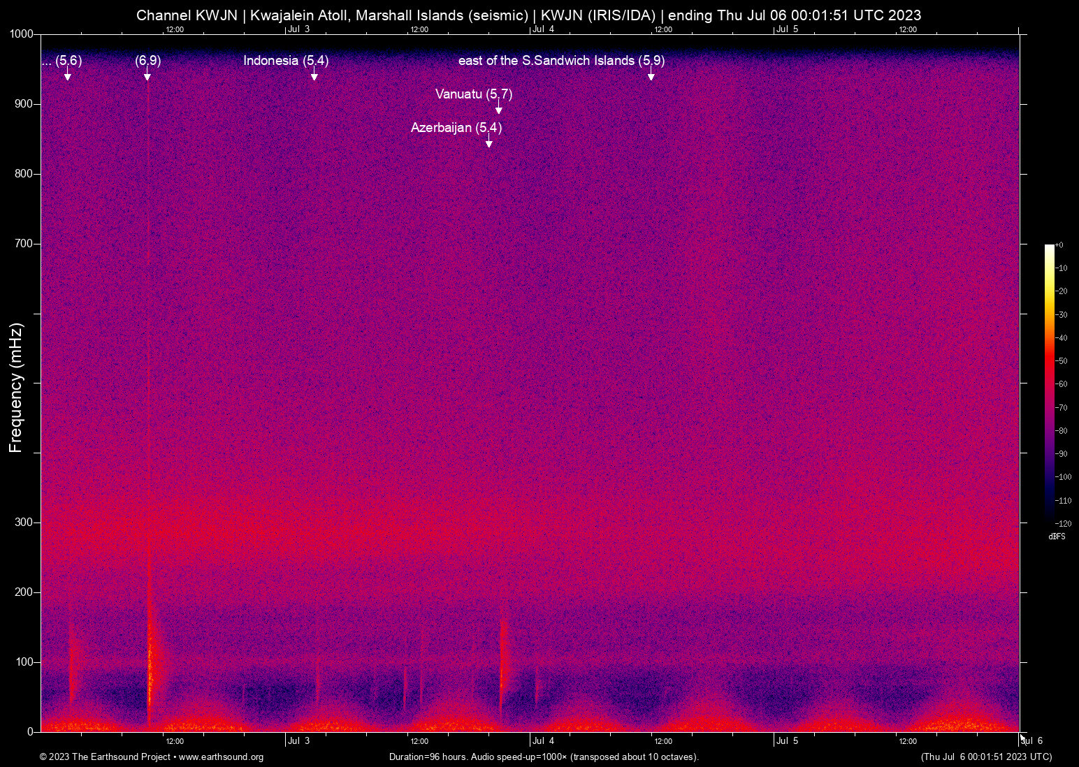 Tue Jul 4 12:01:02 2023 5.9 -12.76 -58.17 6 east of the S.Sandwich Islands (east of the South Sandwich Islands)