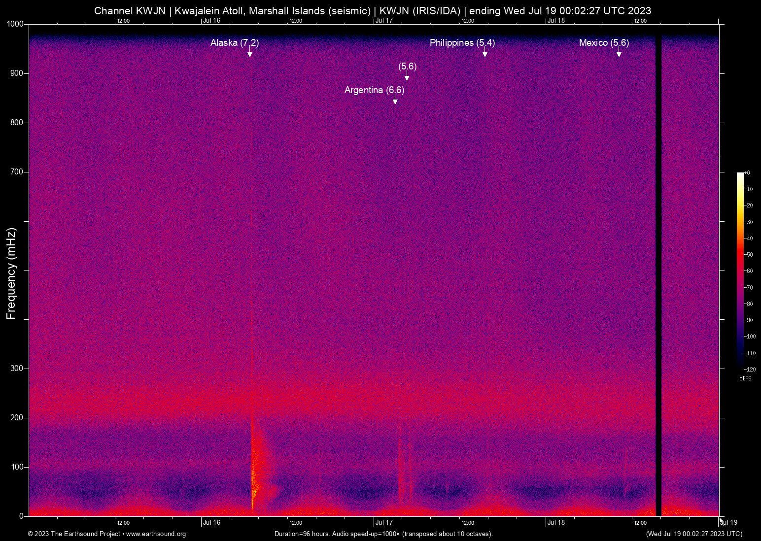 Sun Jul 16 06:48:22 2023 7.2 -160.76 54.46 7 Alaska (98 km S of Sand Point, Alaska)
