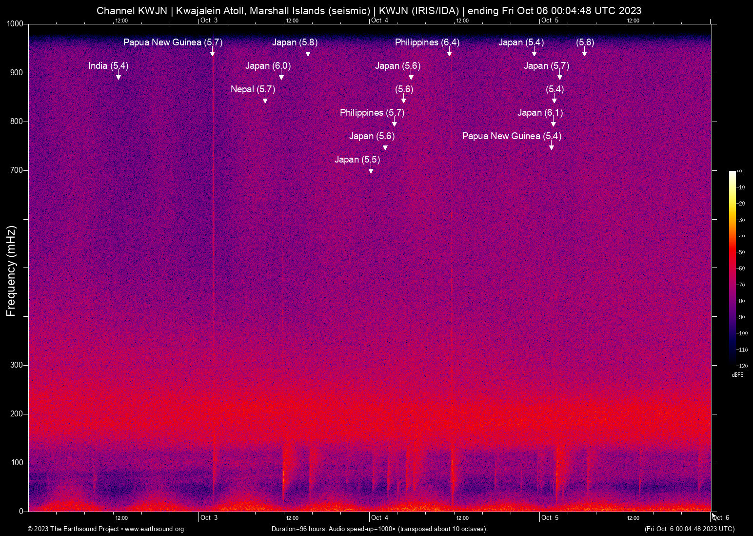 Thu Oct 5 01:59:58 2023 6.1 139.95 29.94 6 Japan (Izu Islands, Japan region)