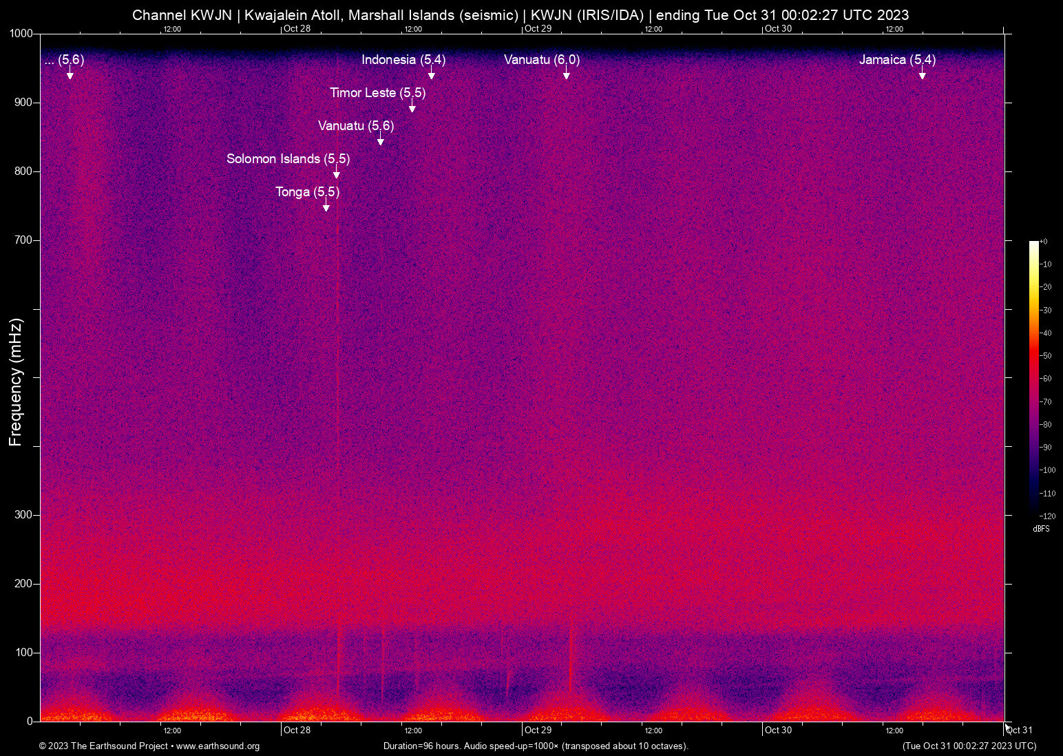 Sat Oct 28 05:31:58 2023 5.5 161.30 -10.22 6 Solomon Islands (72 km WNW of Kirakira, Solomon Islands)