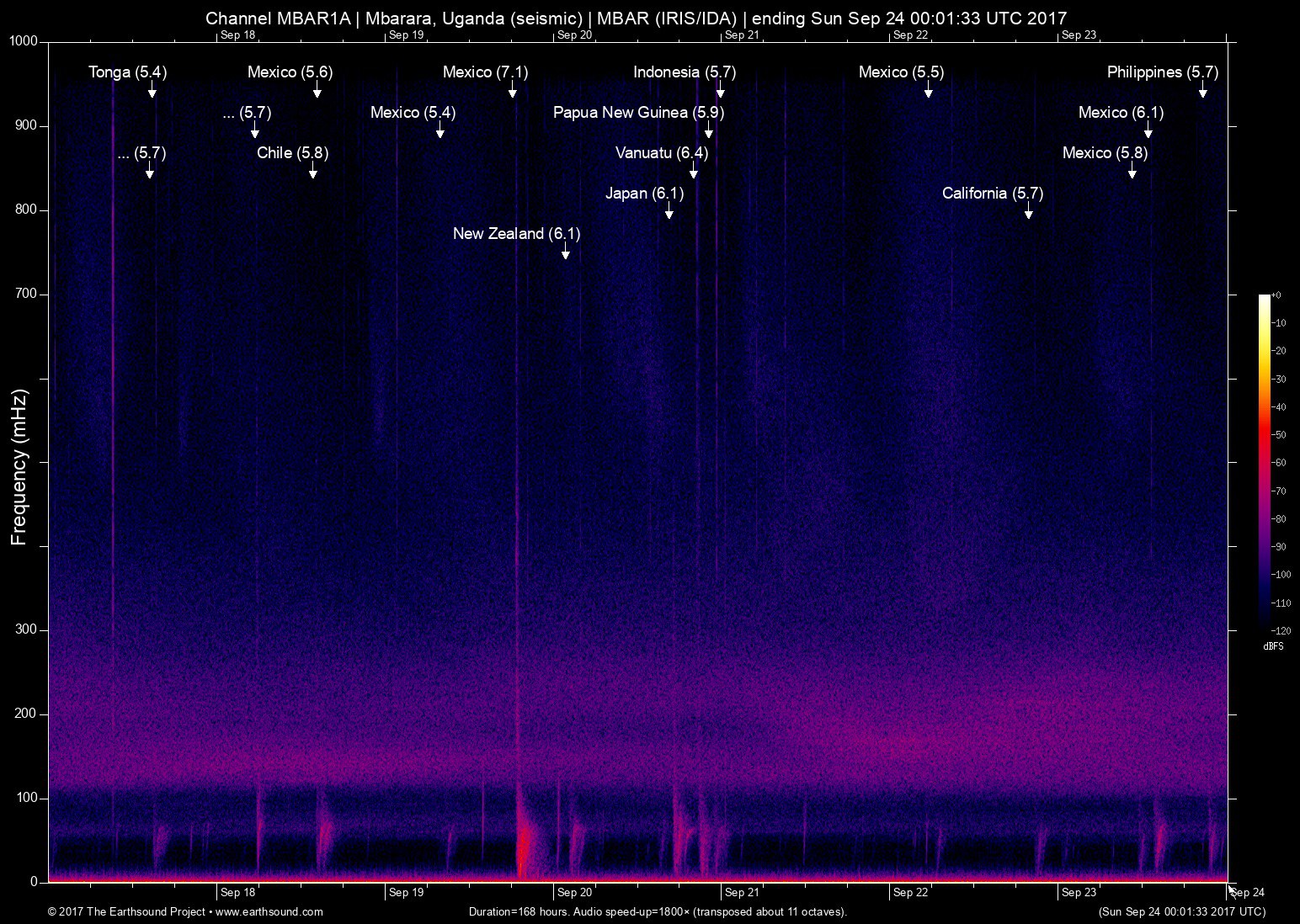 Sat Sep 23 10:38:08 2017 5.8 -94.16 15.70 6 Mexico (48km SW of Paredon, Mexico)