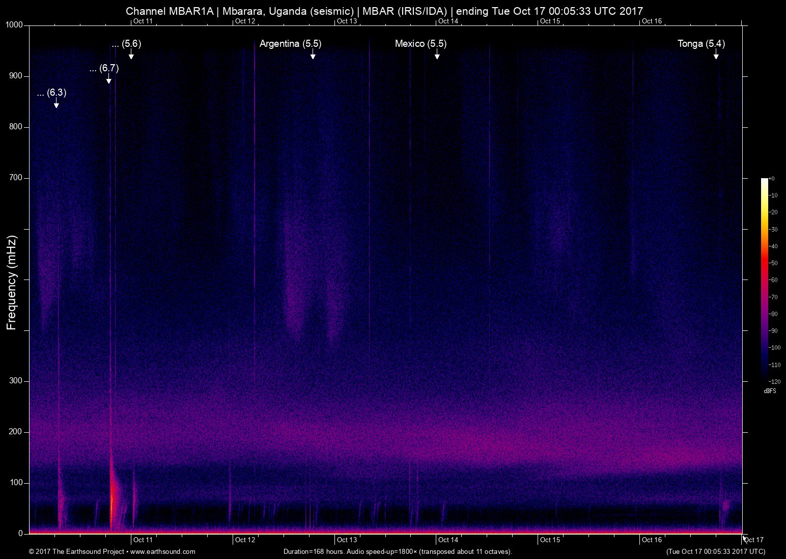 Mbarara, Uganda (seismic) archived on October 16, 2017
