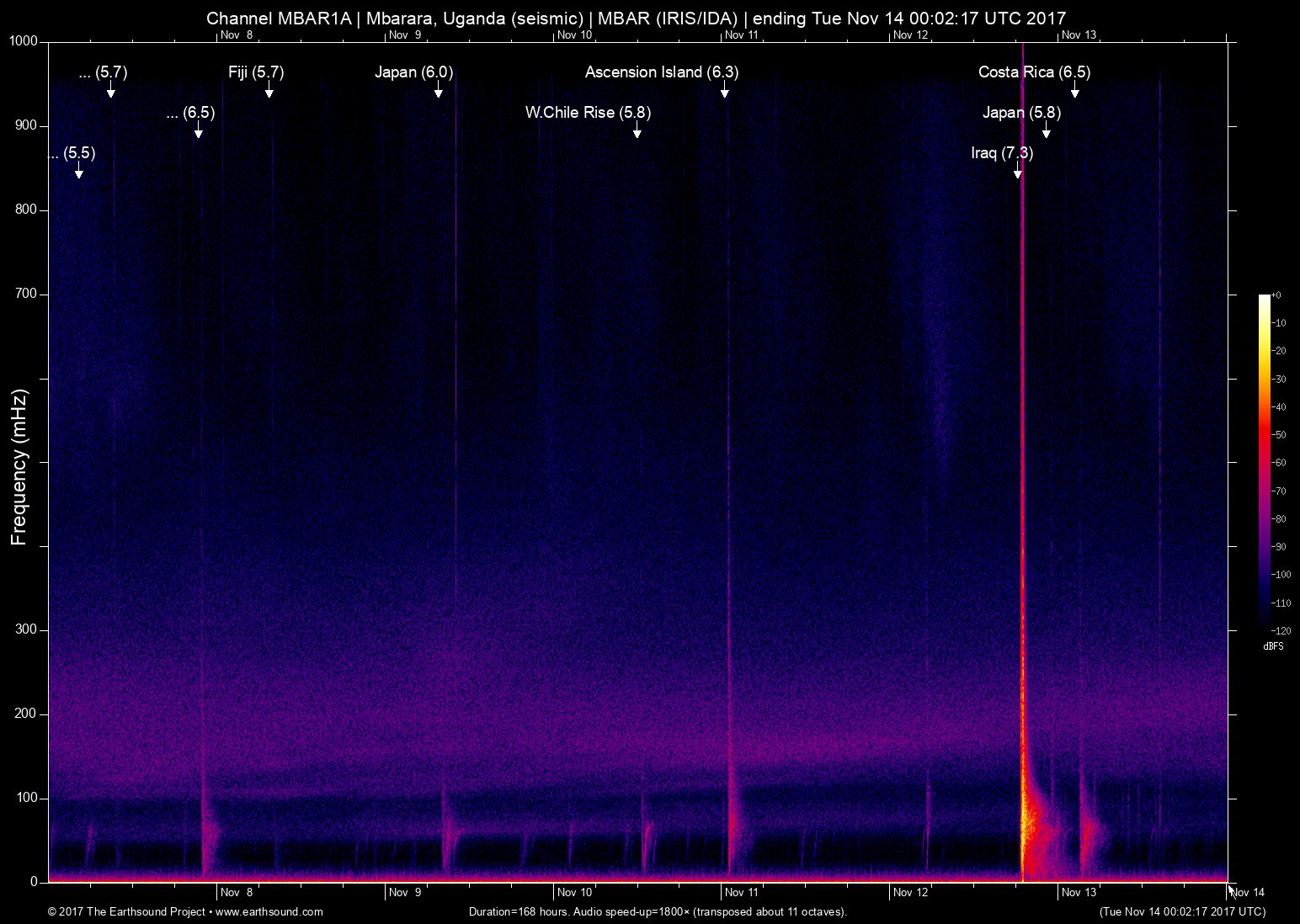 Mbarara, Uganda (seismic) archived on November 13, 2017
