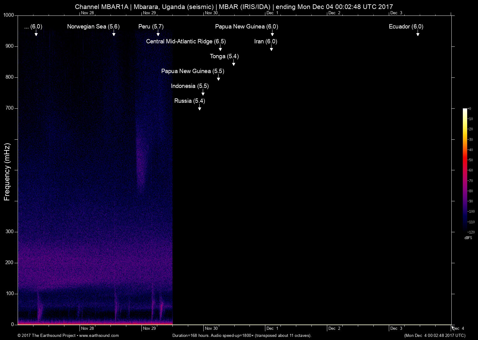Sun Dec 3 11:19:06 2017 6.0 -80.28 -0.48 6 Ecuador (19km NE of Bahia de Caraquez, Ecuador)