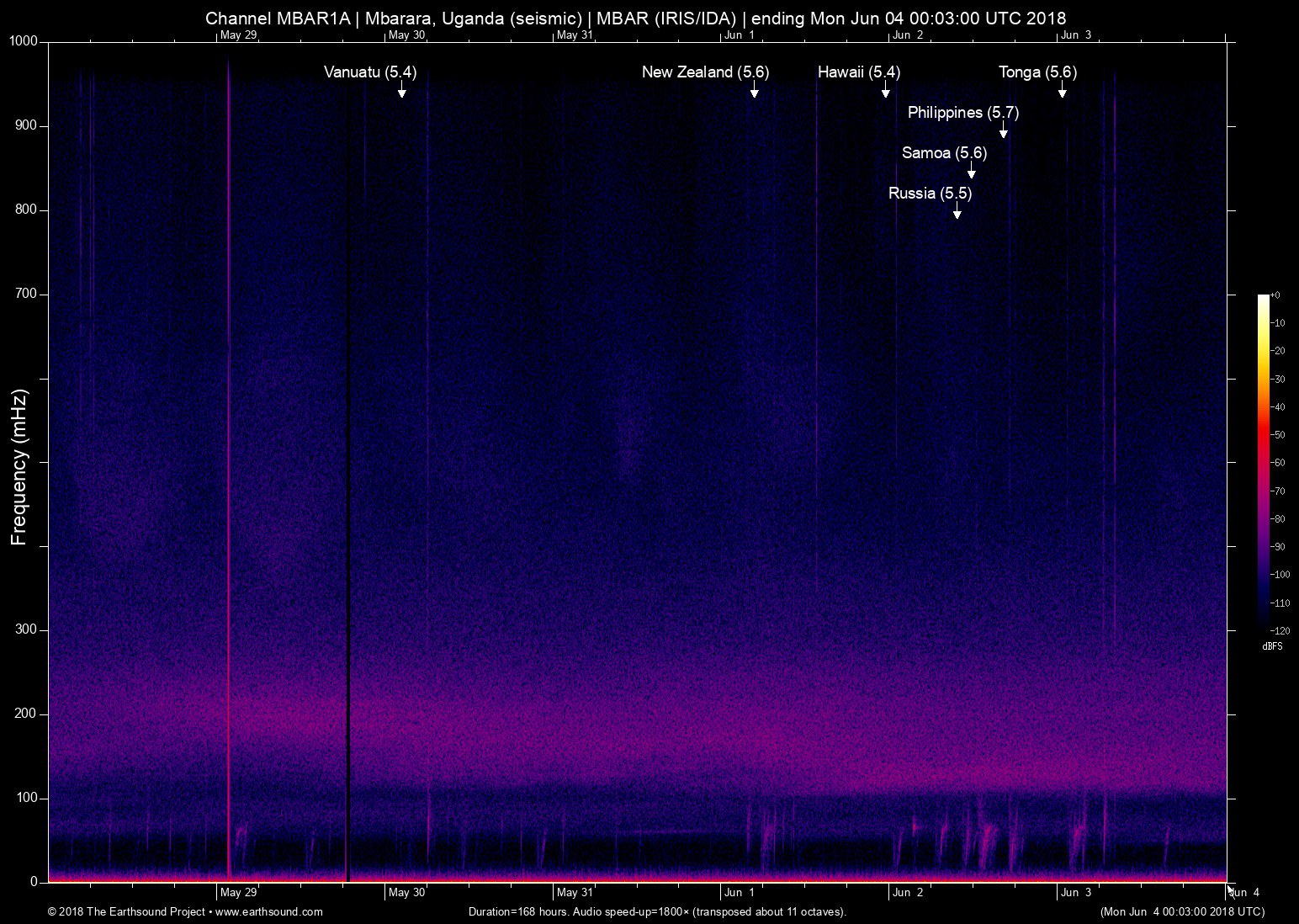 Sun Jun 3 00:48:09 2018 5.6 -173.68 -19.40 6 Tonga (82km ENE of Pangai, Tonga)