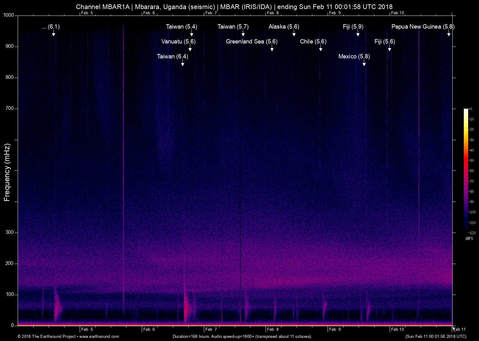 Sun Feb 4 13:56:42 2018 6.1 121.68 24.16 6 Taiwan (21km NNE of Hualian, Taiwan)