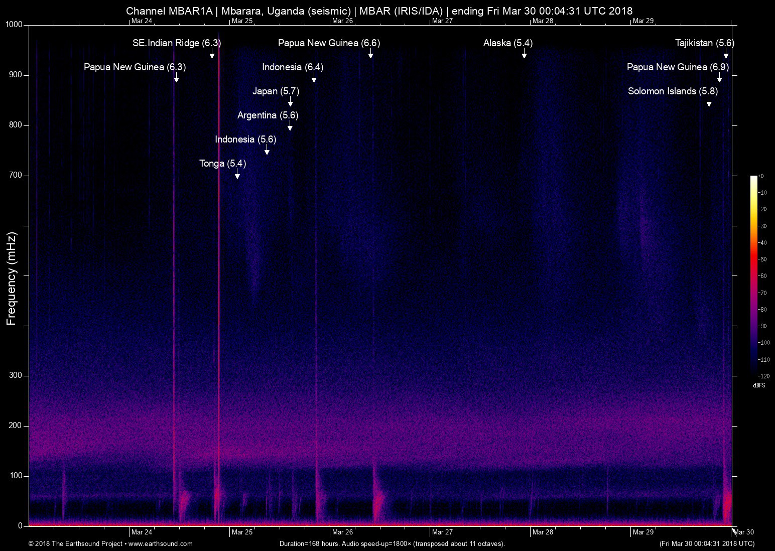 Sat Mar 24 11:23:32 2018 6.3 151.48 -5.48 6 Papua New Guinea (148km E of Kimbe, Papua New Guinea)