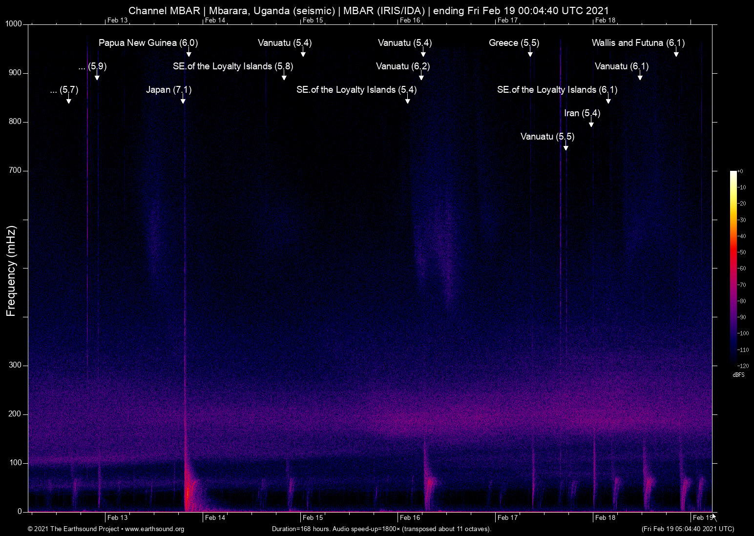 Thu Feb 18 01:37:30 2021 6.1 168.06 -18.94 6 Vanuatu (135 km SSW of Port-Vila, Vanuatu)
