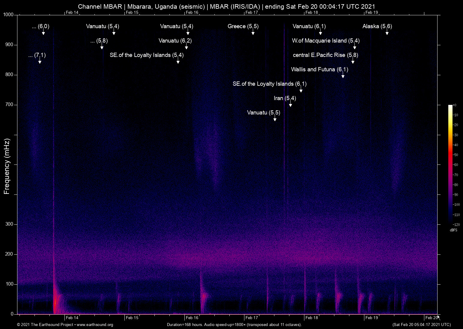 Thu Feb 18 01:37:30 2021 6.1 168.06 -18.94 6 Vanuatu (135 km SSW of Port-Vila, Vanuatu)
