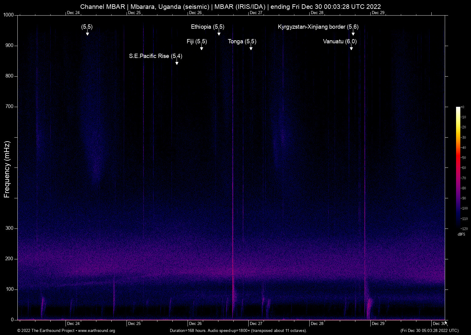 Mon Dec 26 20:00:46 2022 5.5 -174.48 -22.02 6 Tonga (89 km SSE of ‘Ohonua, Tonga)