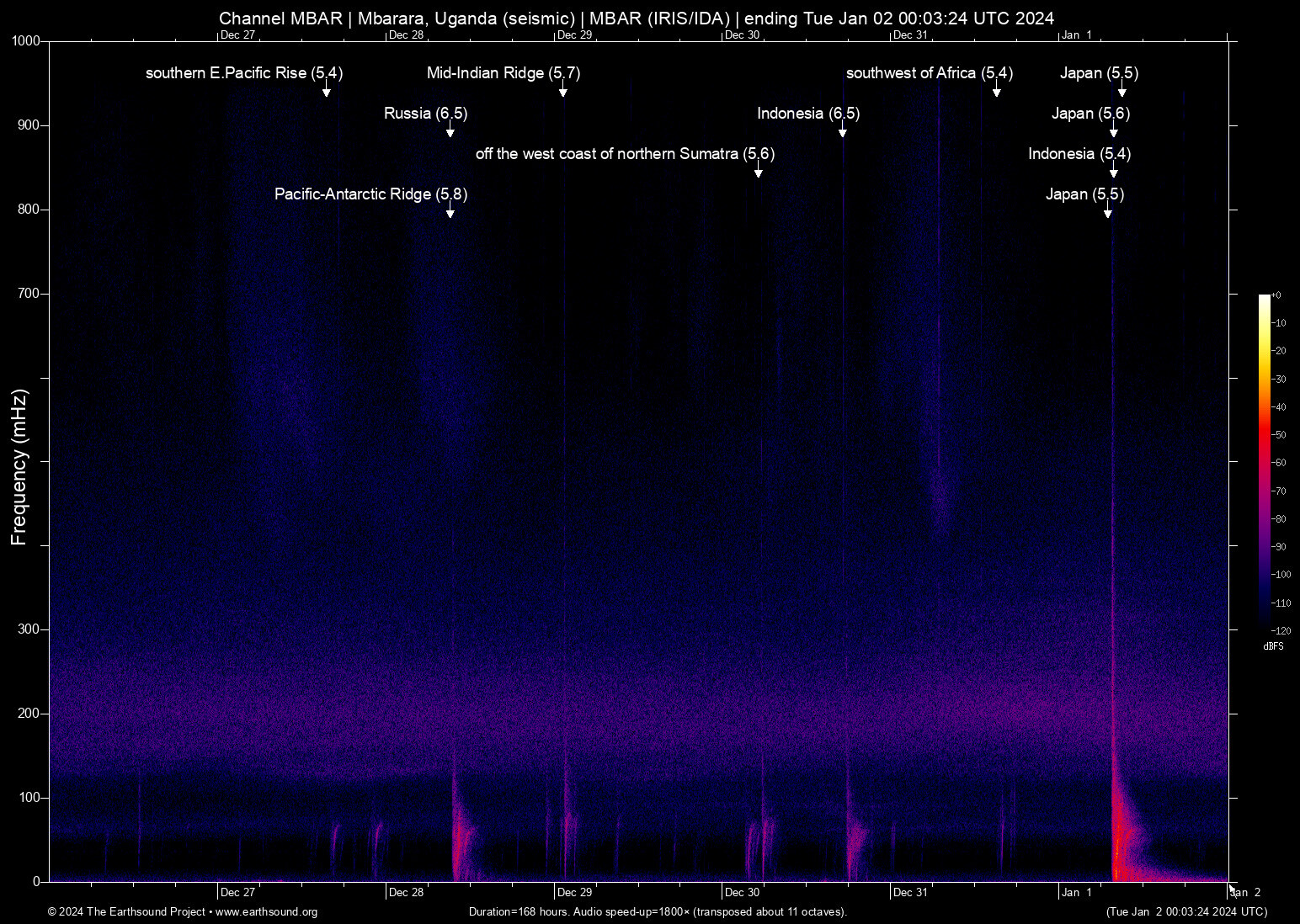 Mon Jan 1 09:08:17 2024 5.6 137.41 37.52 6 Japan (55 km NE of Anamizu, Japan) *