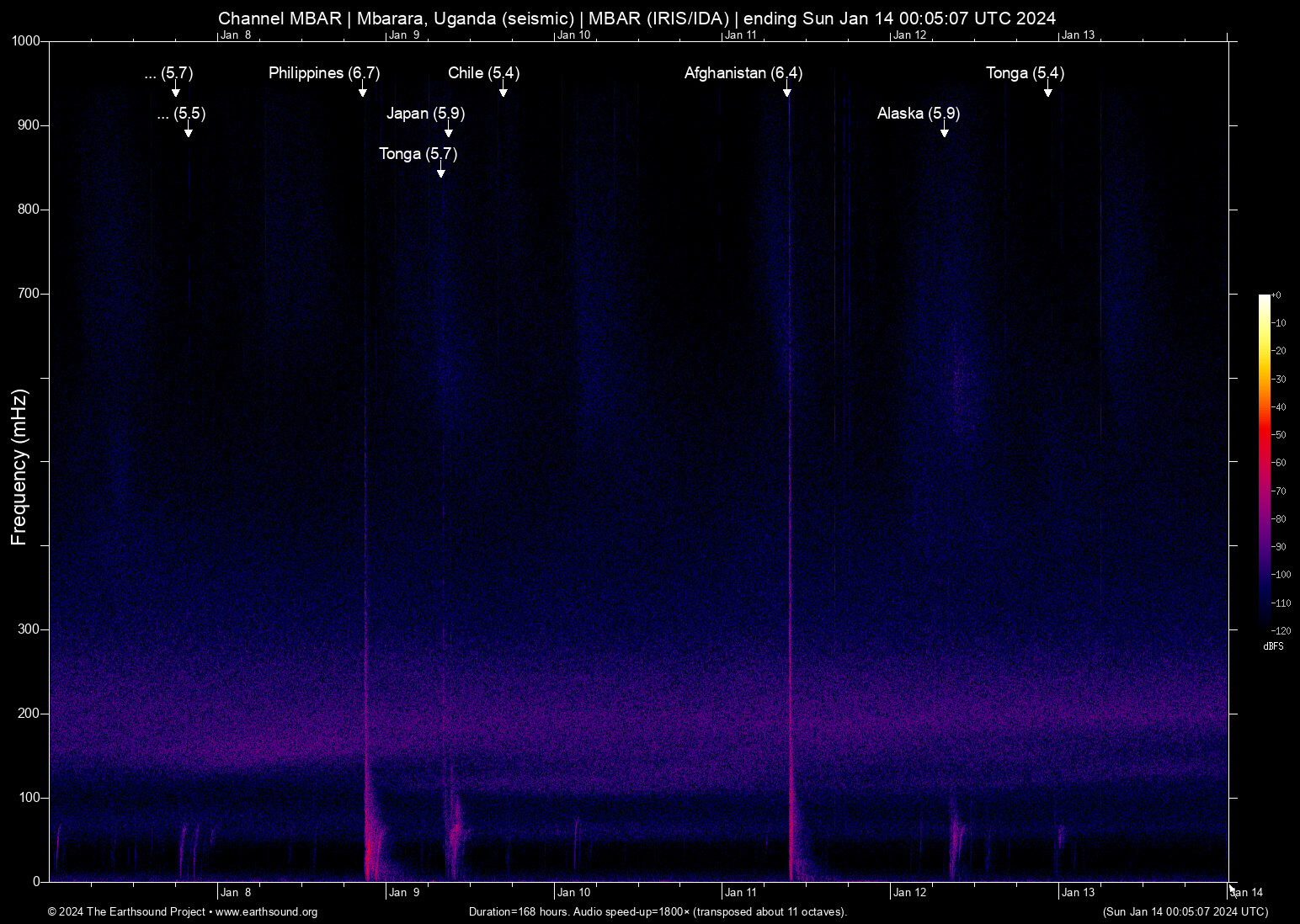 Fri Jan 12 22:32:09 2024 5.4 -174.56 -22.93 5 Tonga (180 km SSE of ‘Ohonua, Tonga)