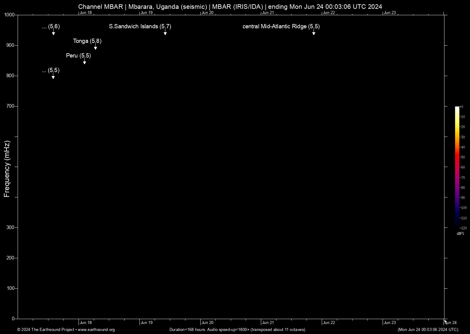Mon Jun 17 14:05:14 2024 5.5 -173.28 -18.82 6 Tonga (76 km ESE of Neiafu, Tonga)