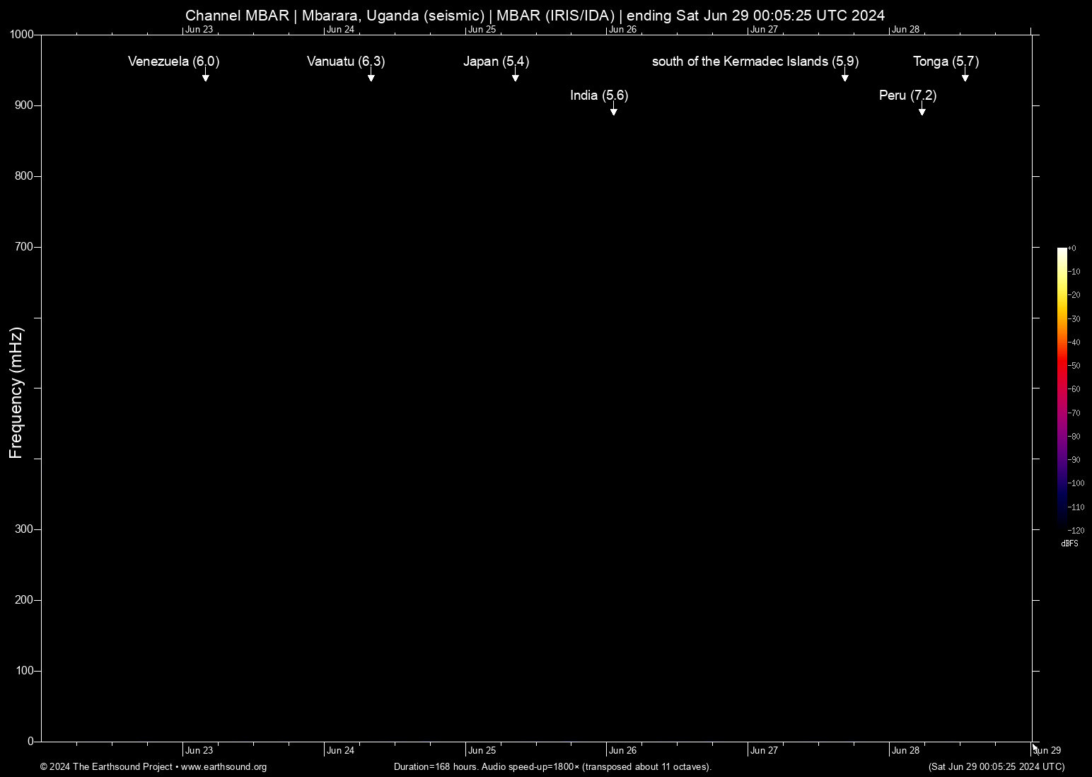 Fri Jun 28 13:00:39 2024 5.7 -175.68 -20.68 6 Tonga (66 km NW of Houma, Tonga)