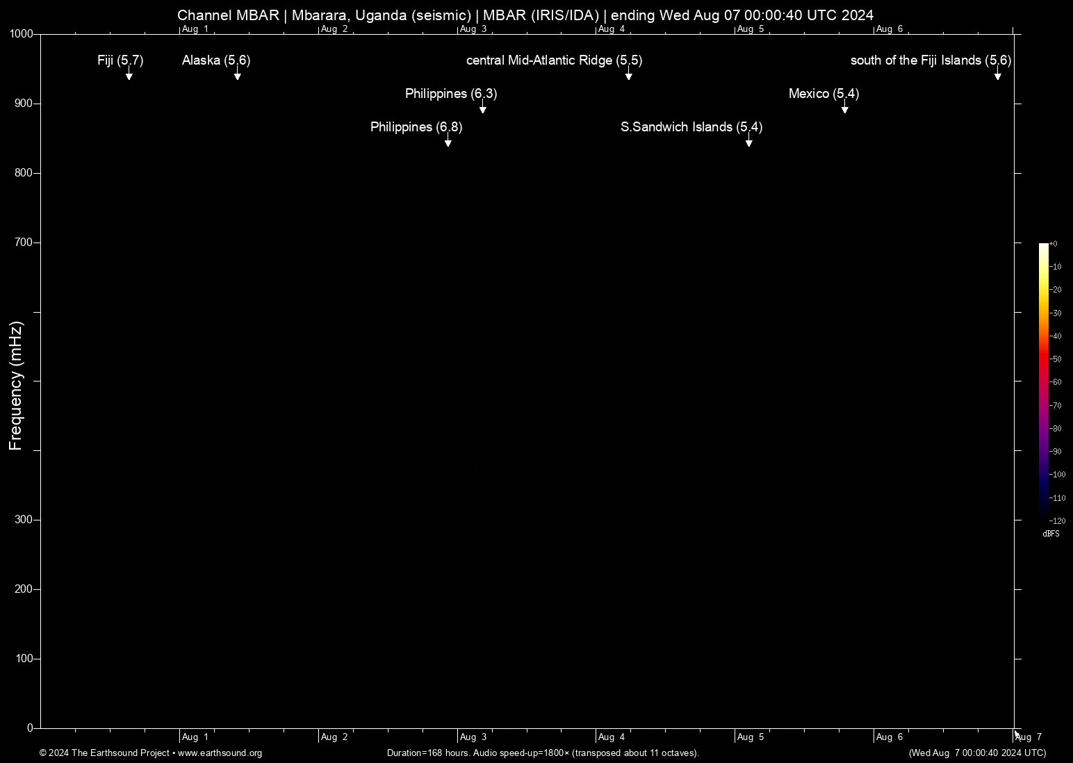 Thu Aug 1 10:03:13 2024 5.6 -159.70 54.11 6 Alaska (145 km SSE of Sand Point, Alaska)