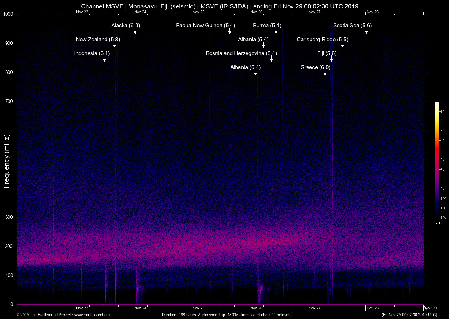 Monasavu, Fiji (seismic) archived on November 28, 2019