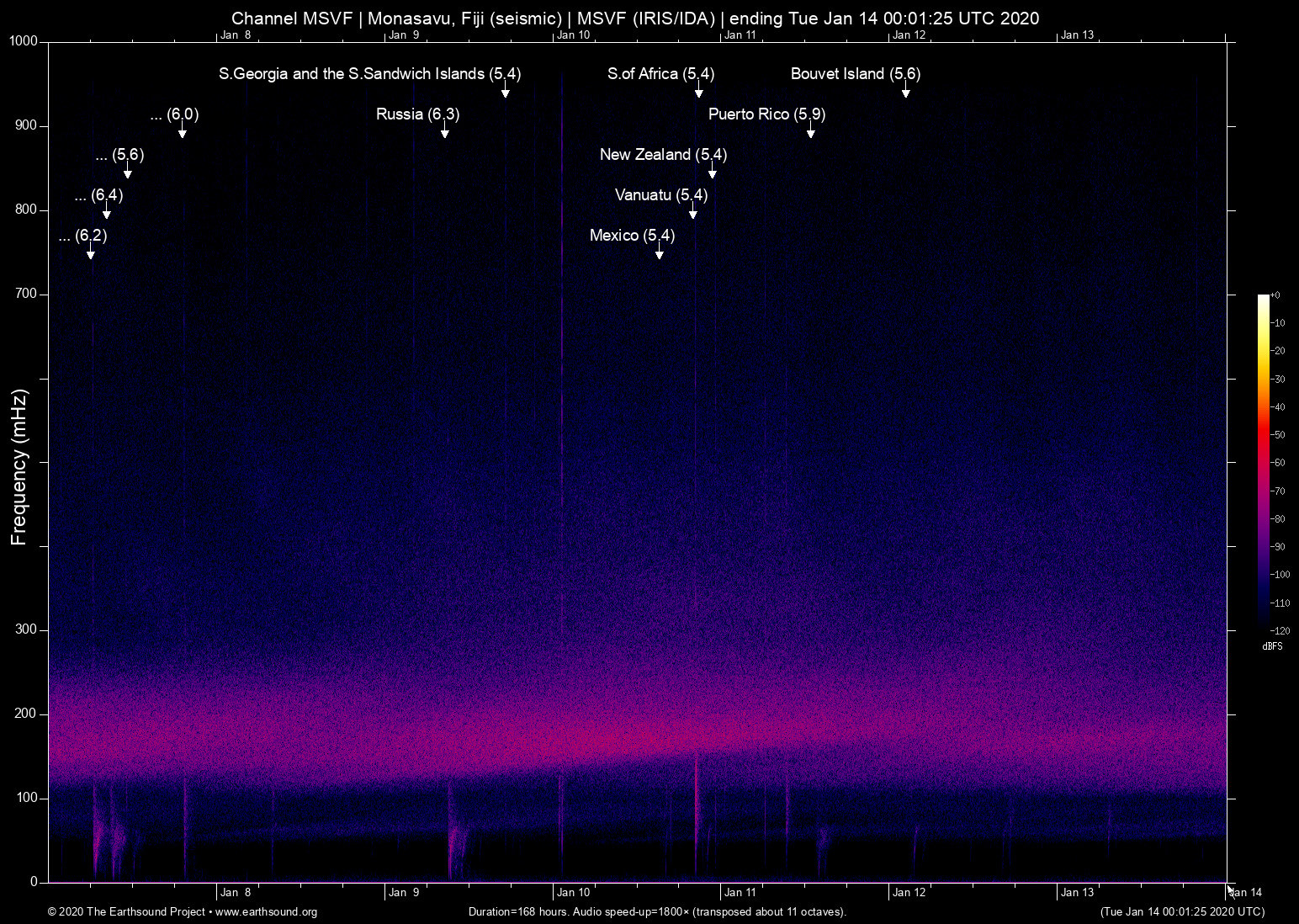 Monasavu, Fiji (seismic) archived on January 13, 2020