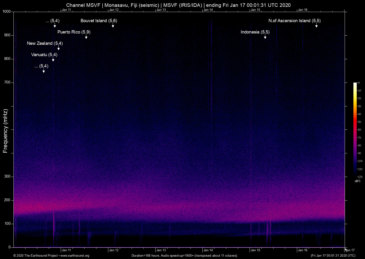 Monasavu, Fiji (seismic) archived on January 16, 2020