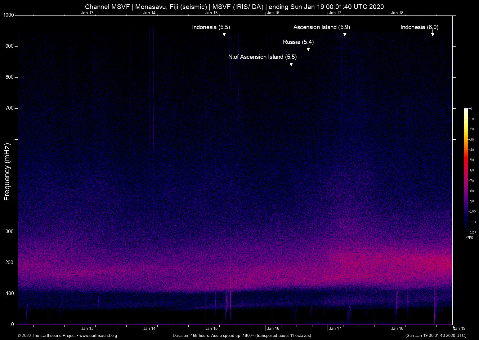 Monasavu, Fiji (seismic) archived on January 18, 2020