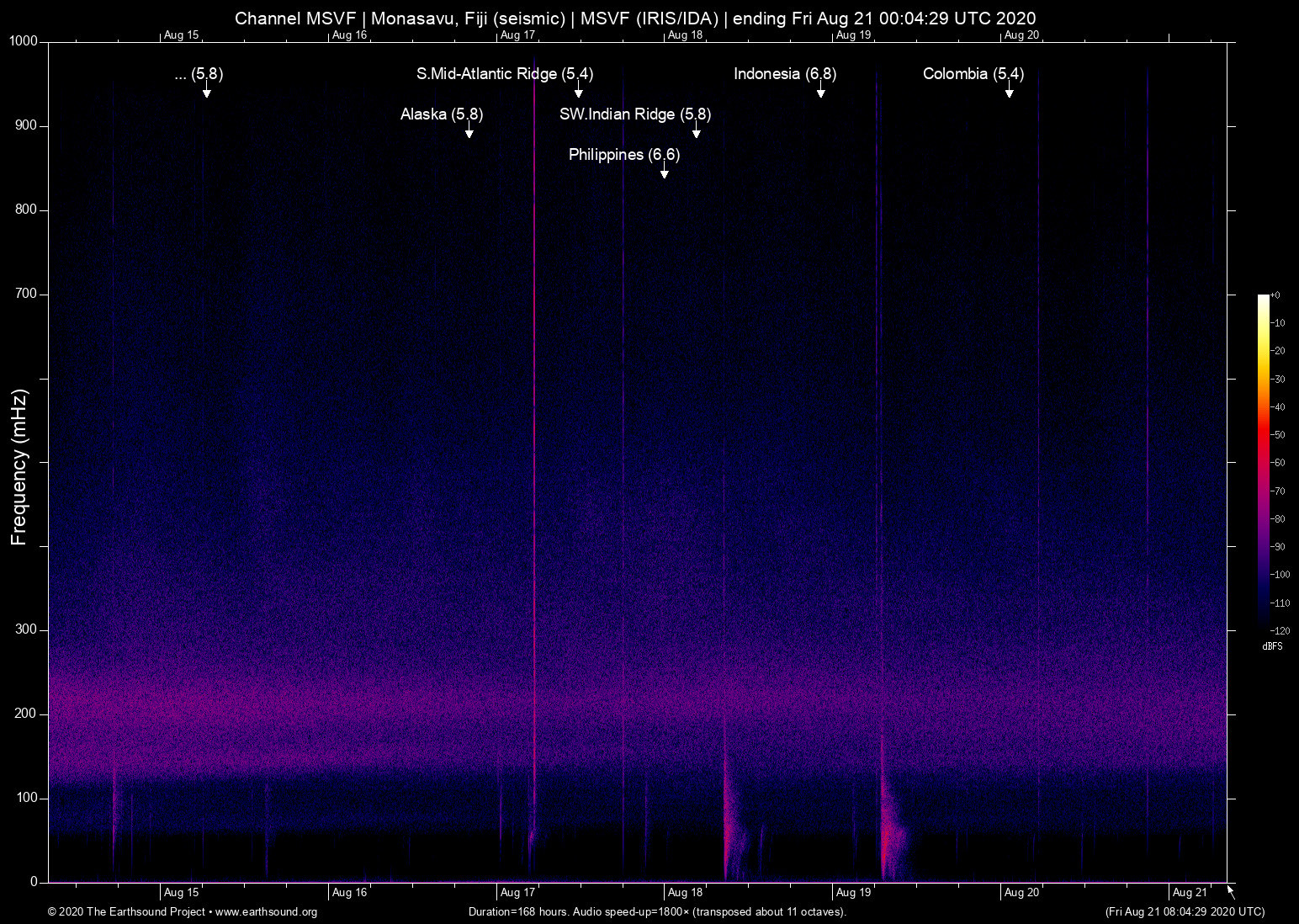 Monasavu, Fiji (seismic) archived on August 20, 2020