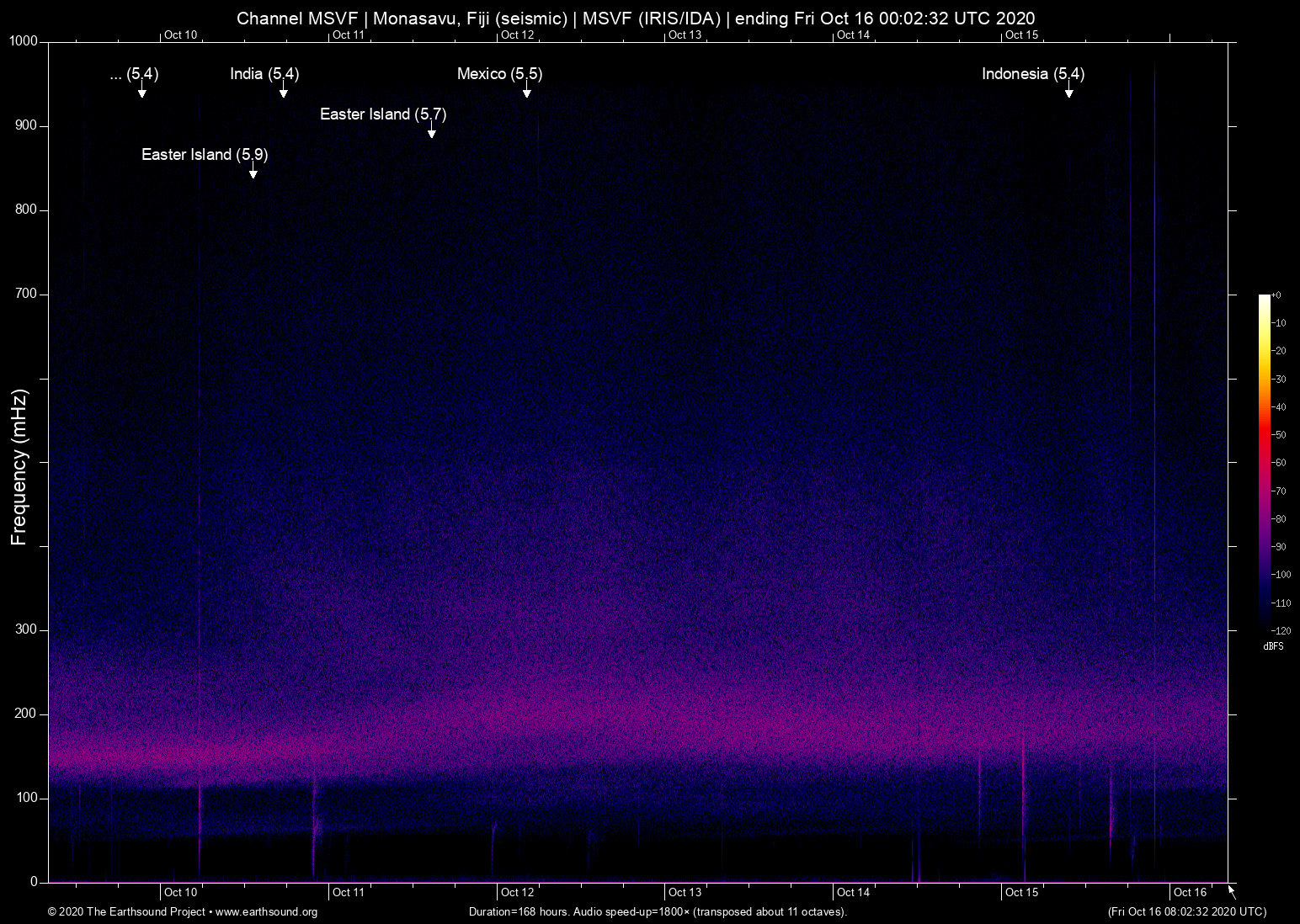 Monasavu, Fiji (seismic) archived on October 15, 2020