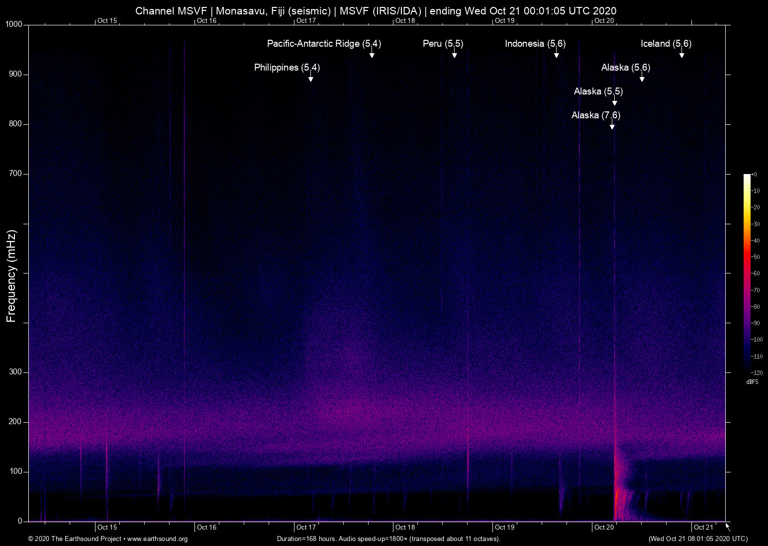 Mon Oct 19 13:54:39 2020 7.6 -159.66 54.61 8 Alaska (97 km SSE of Sand Point, Alaska)