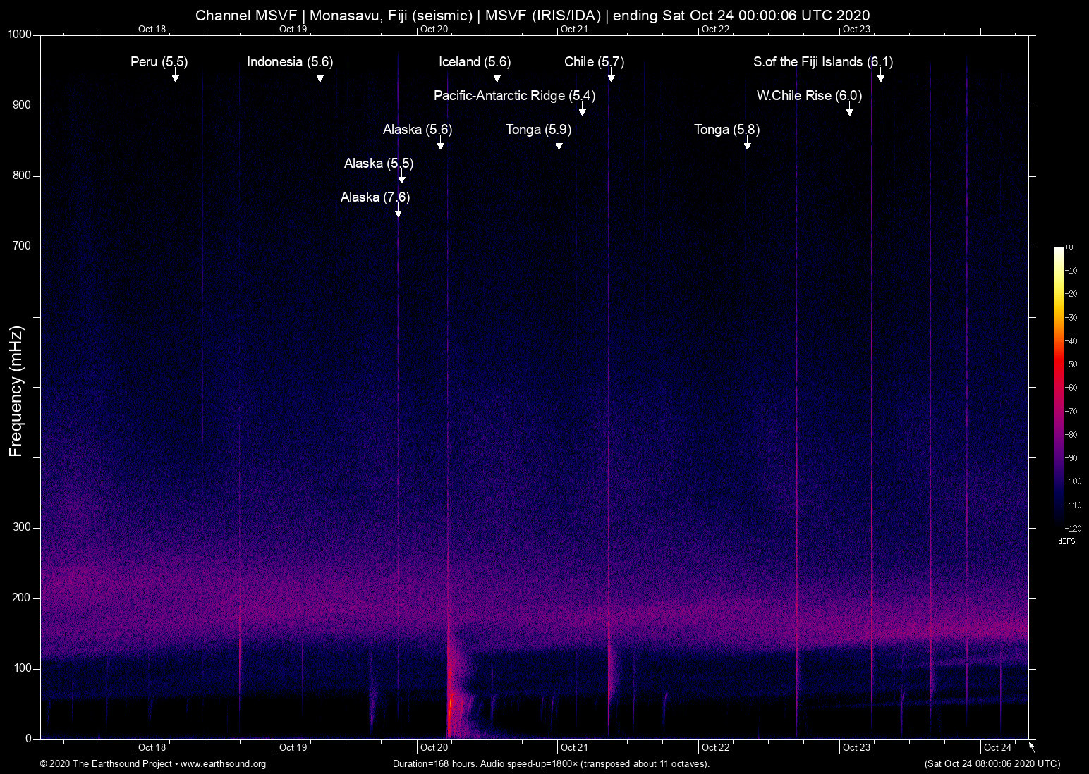 Mon Oct 19 13:54:39 2020 7.6 -159.64 54.62 8 Alaska (97 km SE of Sand Point, Alaska)