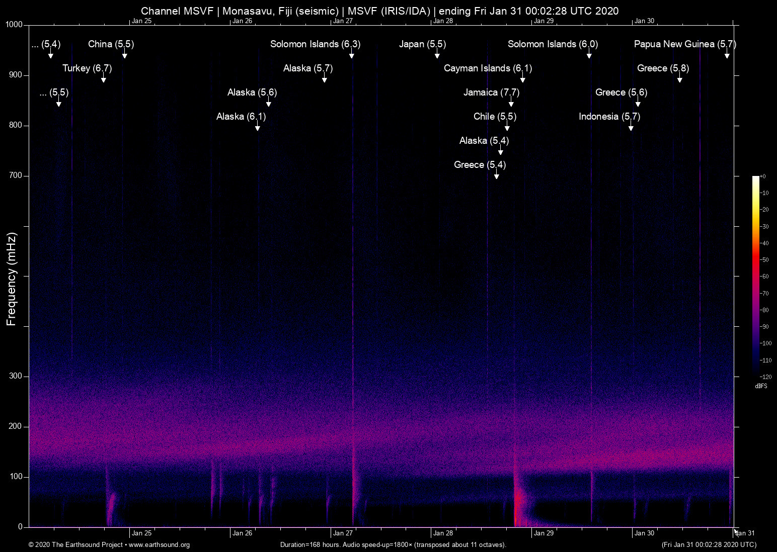 Monasavu, Fiji (seismic) archived on January 30, 2020