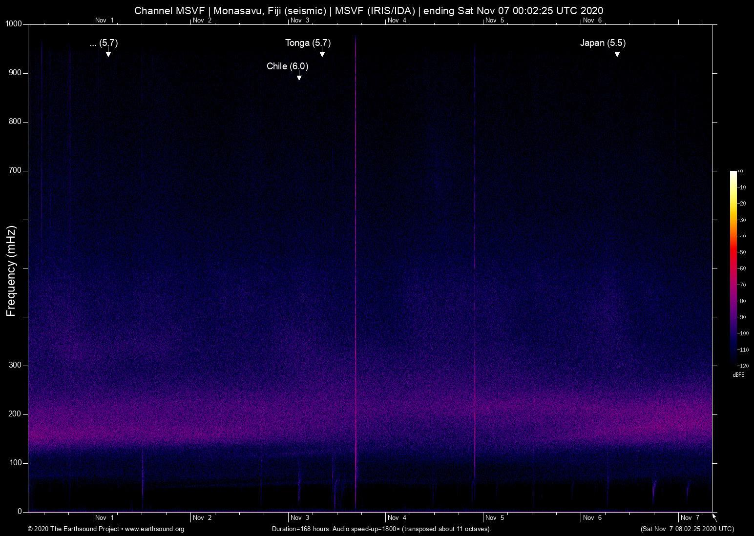 Tue Nov 3 00:18:56 2020 5.7 -177.49 -20.00 6 Tonga (268 km WNW of Haveluloto, Tonga)