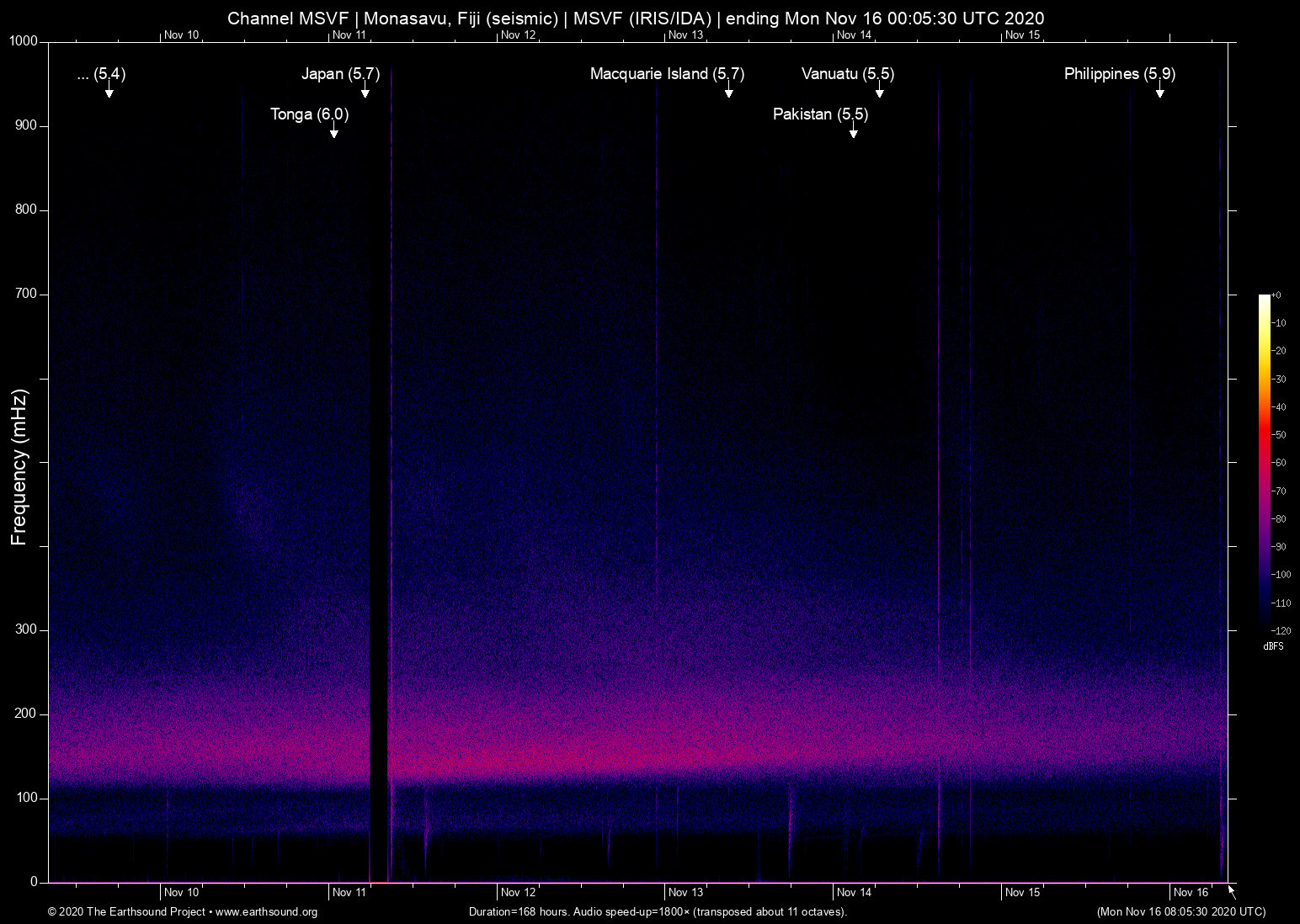 Monasavu, Fiji (seismic) archived on November 15, 2020