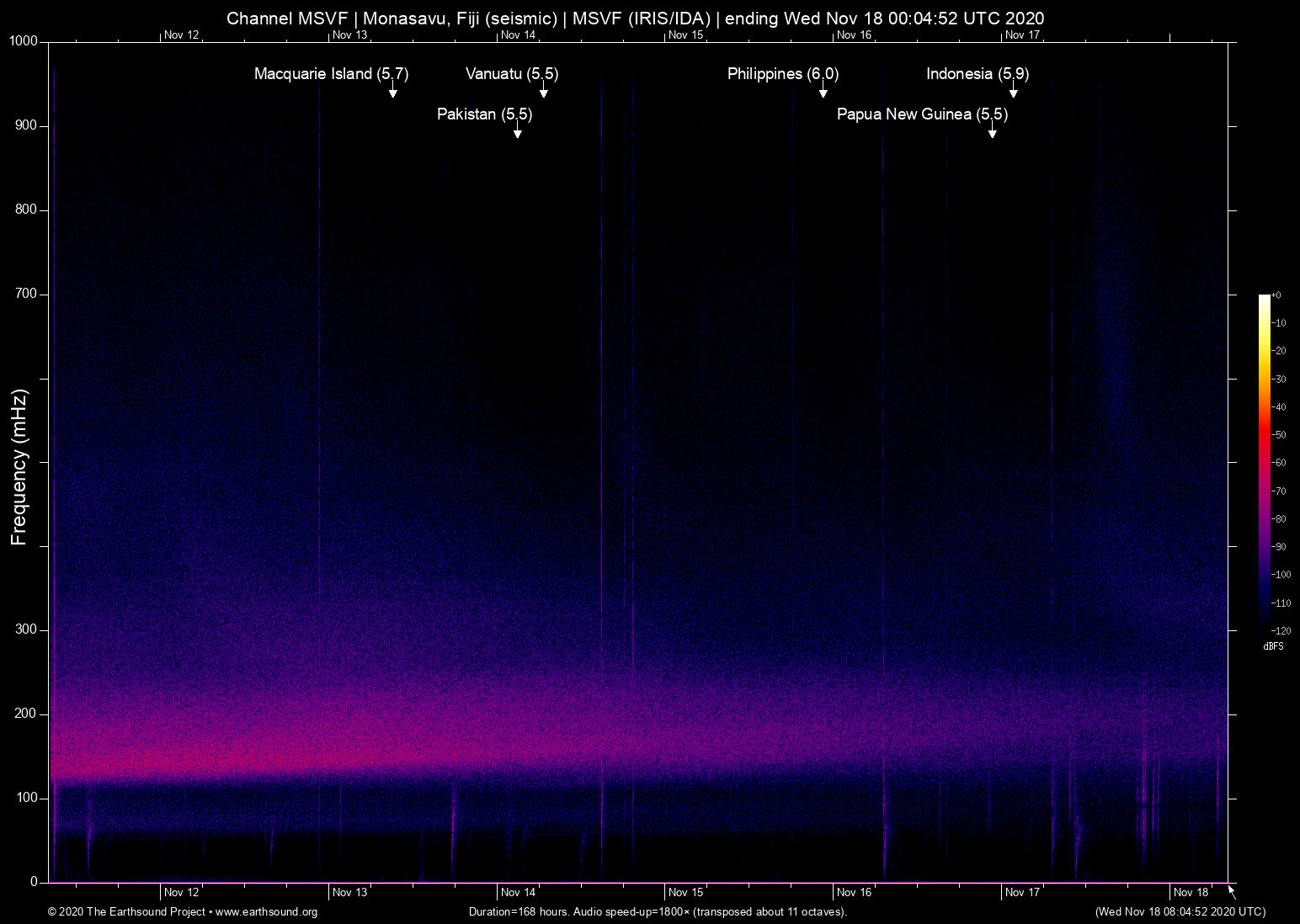 Monasavu, Fiji (seismic) archived on November 17, 2020