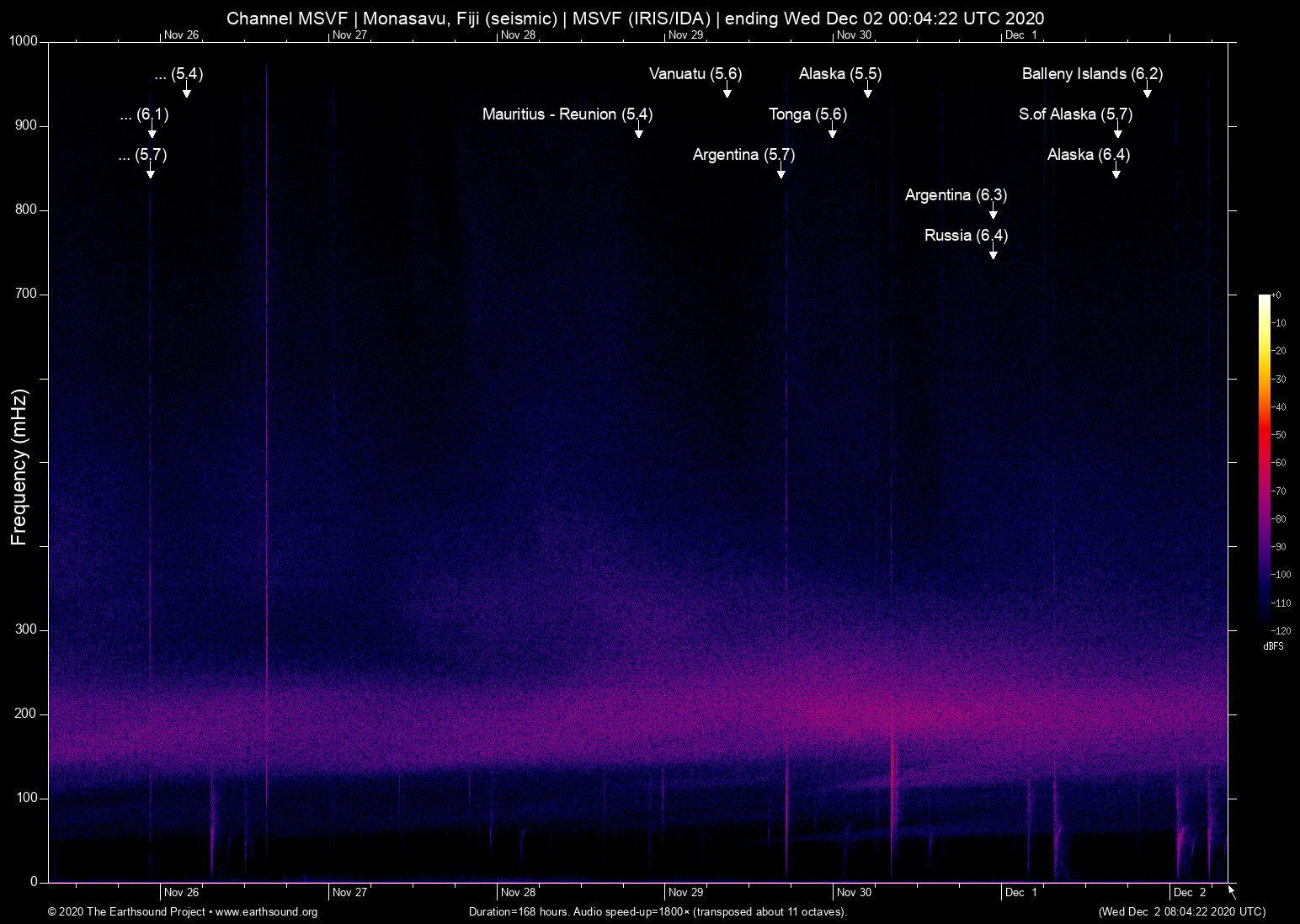 Monasavu, Fiji (seismic) archived on December 1, 2020