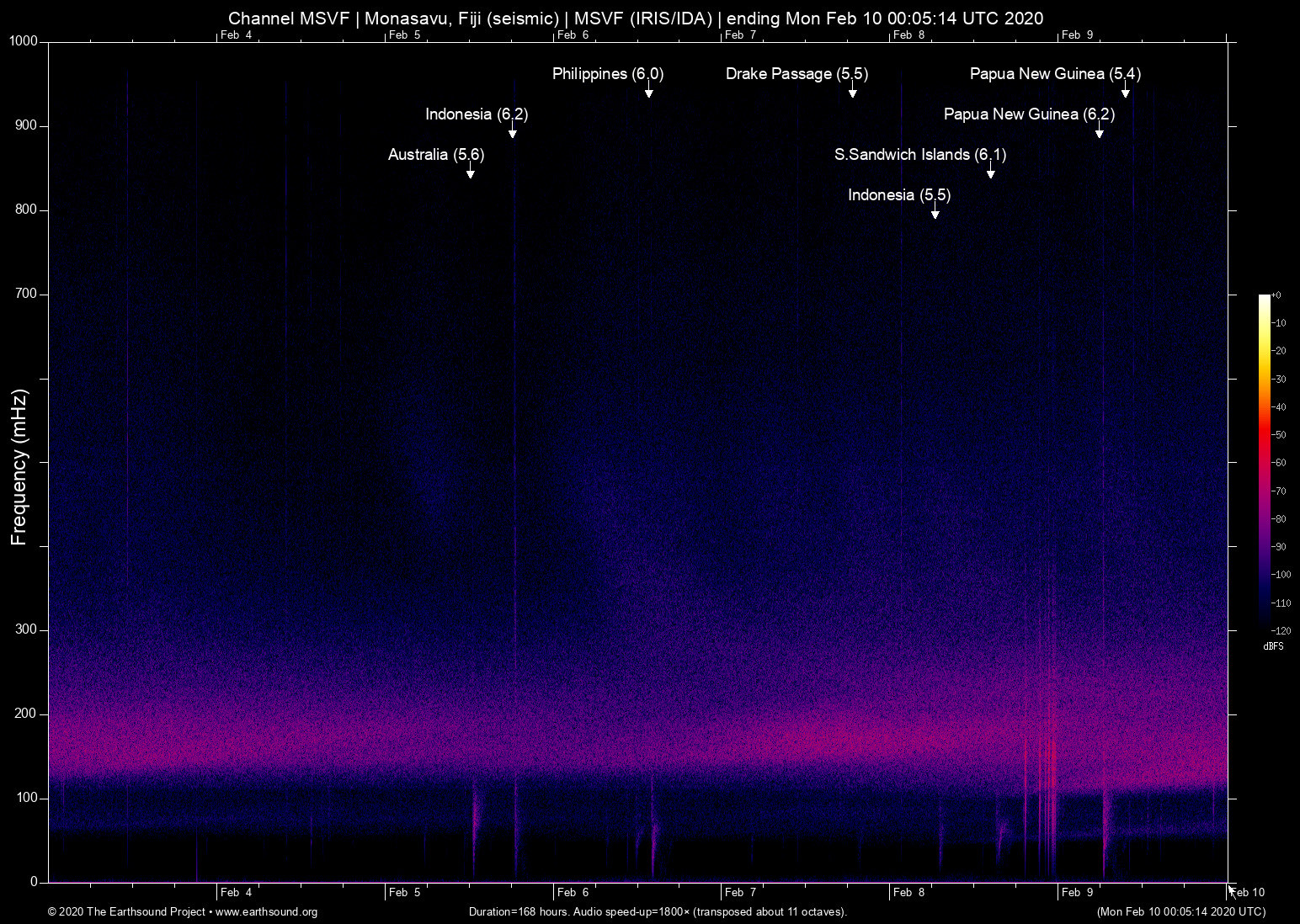 Sat Feb 8 14:32:57 2020 6.1 -25.48 -60.02 6 S.Sandwich Islands (124km SSE of Bristol Island, South Sandwich Islands)