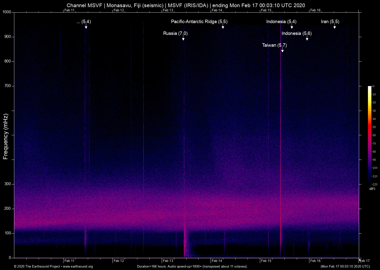 Monasavu, Fiji (seismic) archived on February 16, 2020