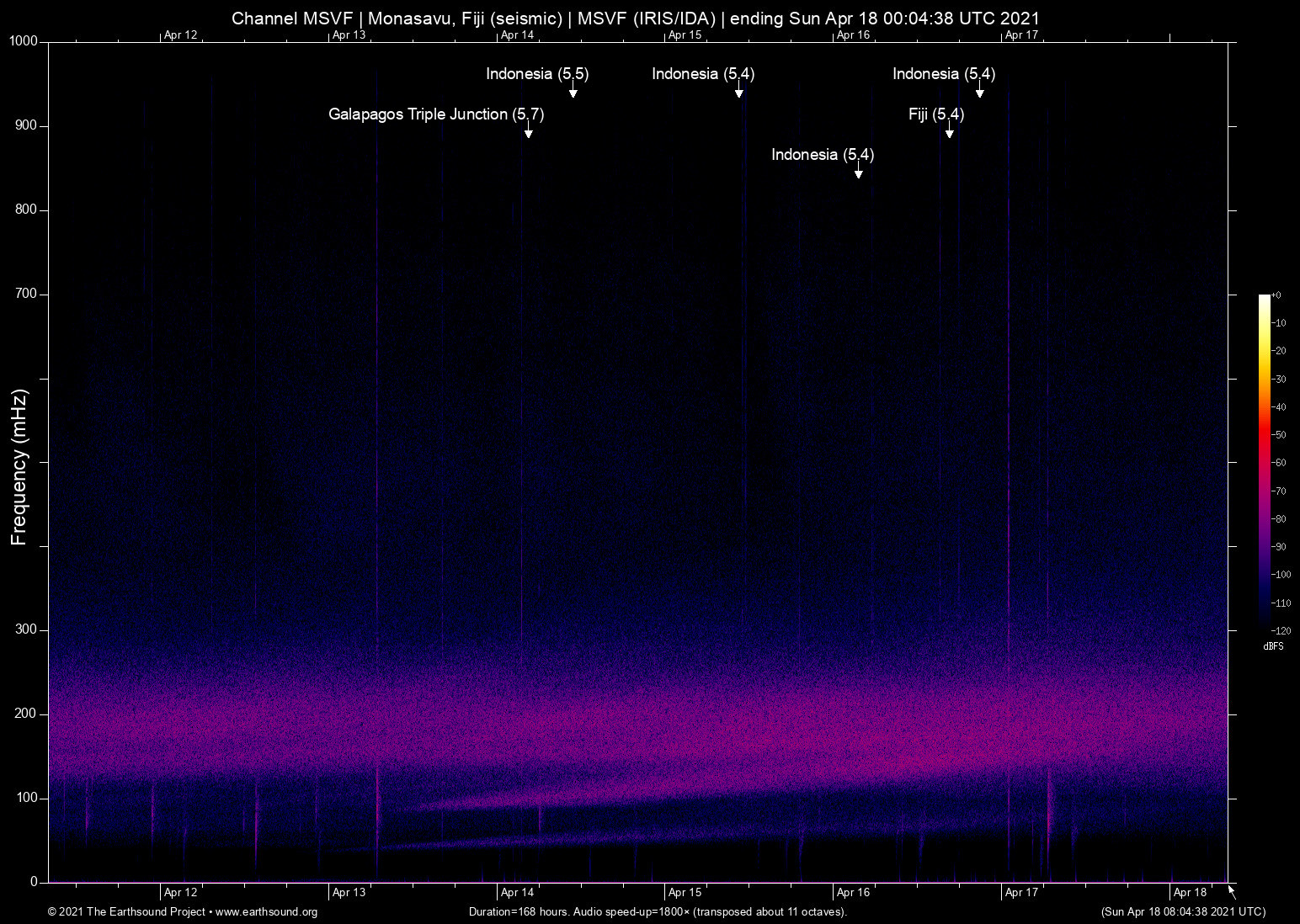 Monasavu, Fiji (seismic) archived on April 17, 2021