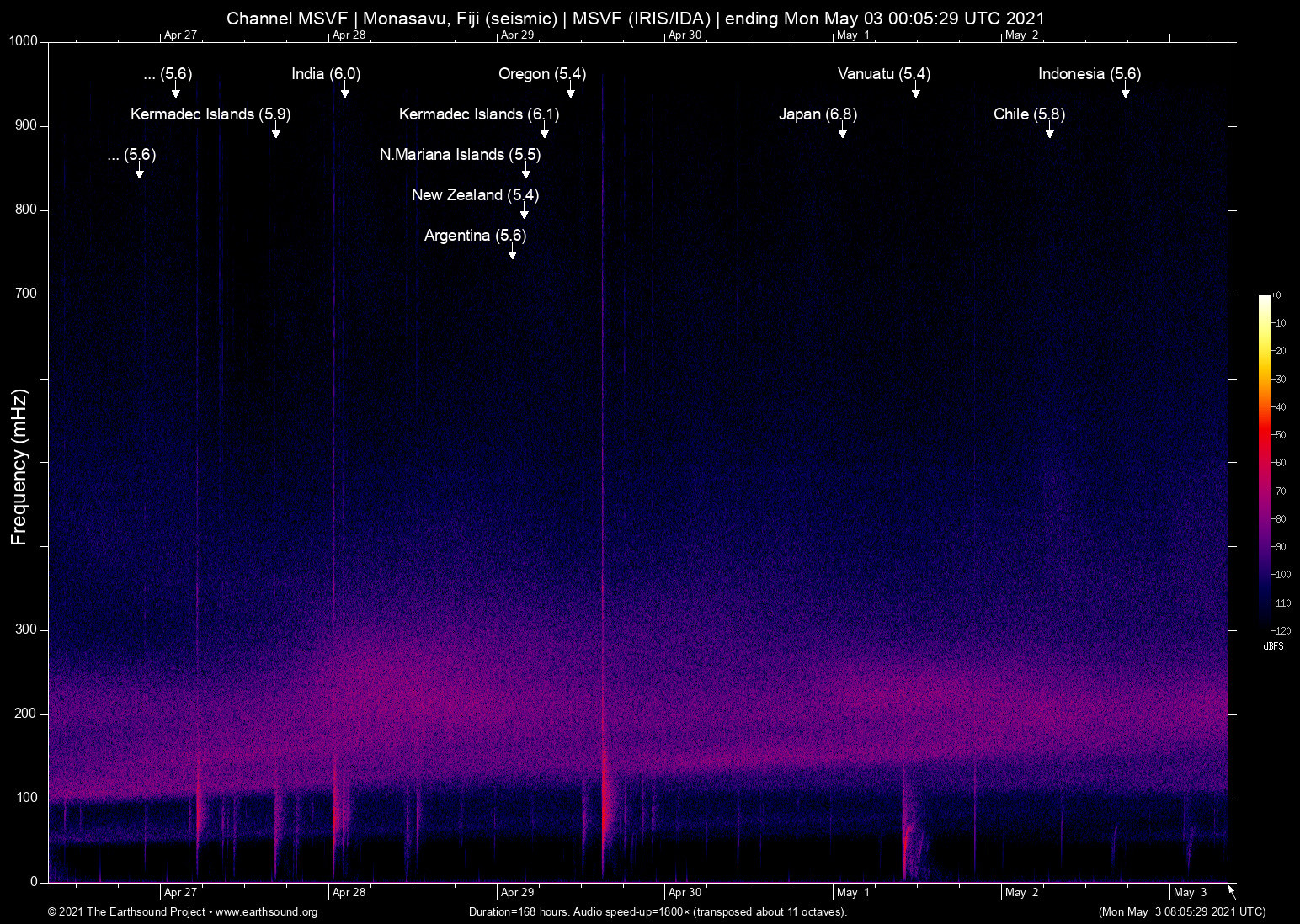 Mon Apr 26 14:07:28 2021 5.6 -176.67 -29.24 6 Kermadec Islands (Kermadec Islands region)