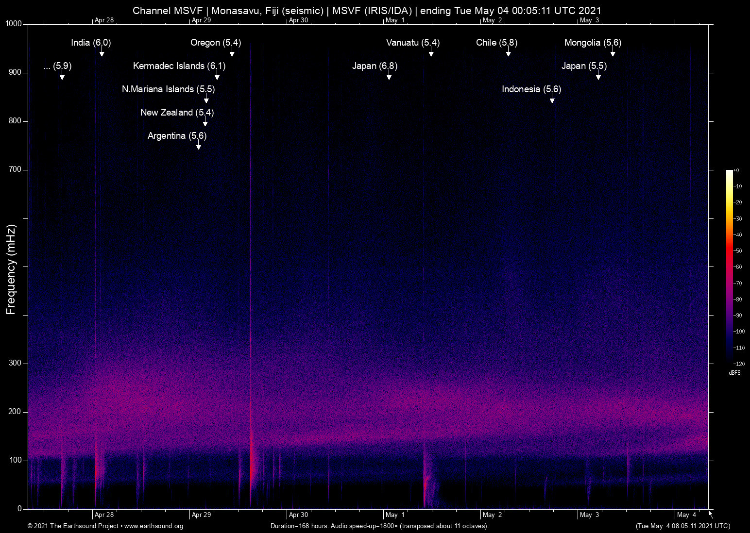 Monasavu, Fiji (seismic) archived on May 3, 2021