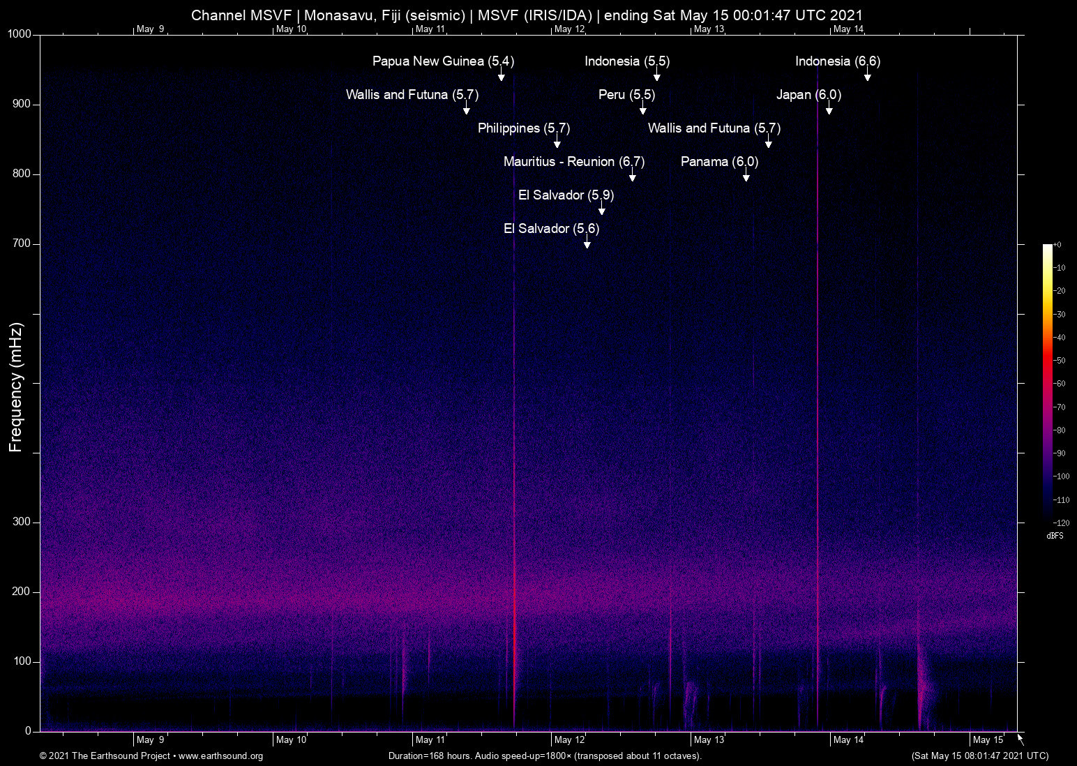Tue May 11 02:21:10 2021 5.7 -177.45 -16.47 6 Wallis and Futuna (249 km SSE of Alo, Wallis and Futuna)