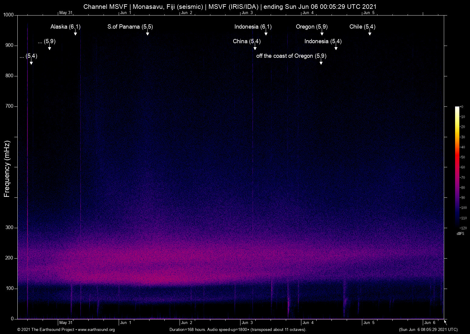 Fri Jun 4 01:17:00 2021 5.9 -126.15 42.25 6 Oregon (143 km W of Gold Beach, Oregon)