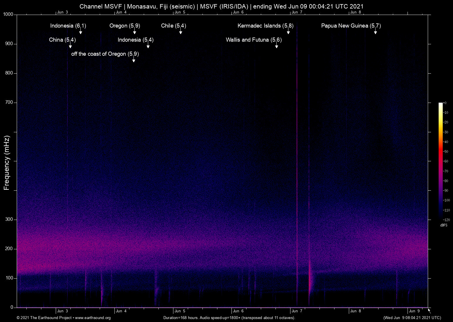 Tue Jun 8 03:56:38 2021 5.7 151.29 -5.17 6 Papua New Guinea (134 km ENE of Kimbe, Papua New Guinea)