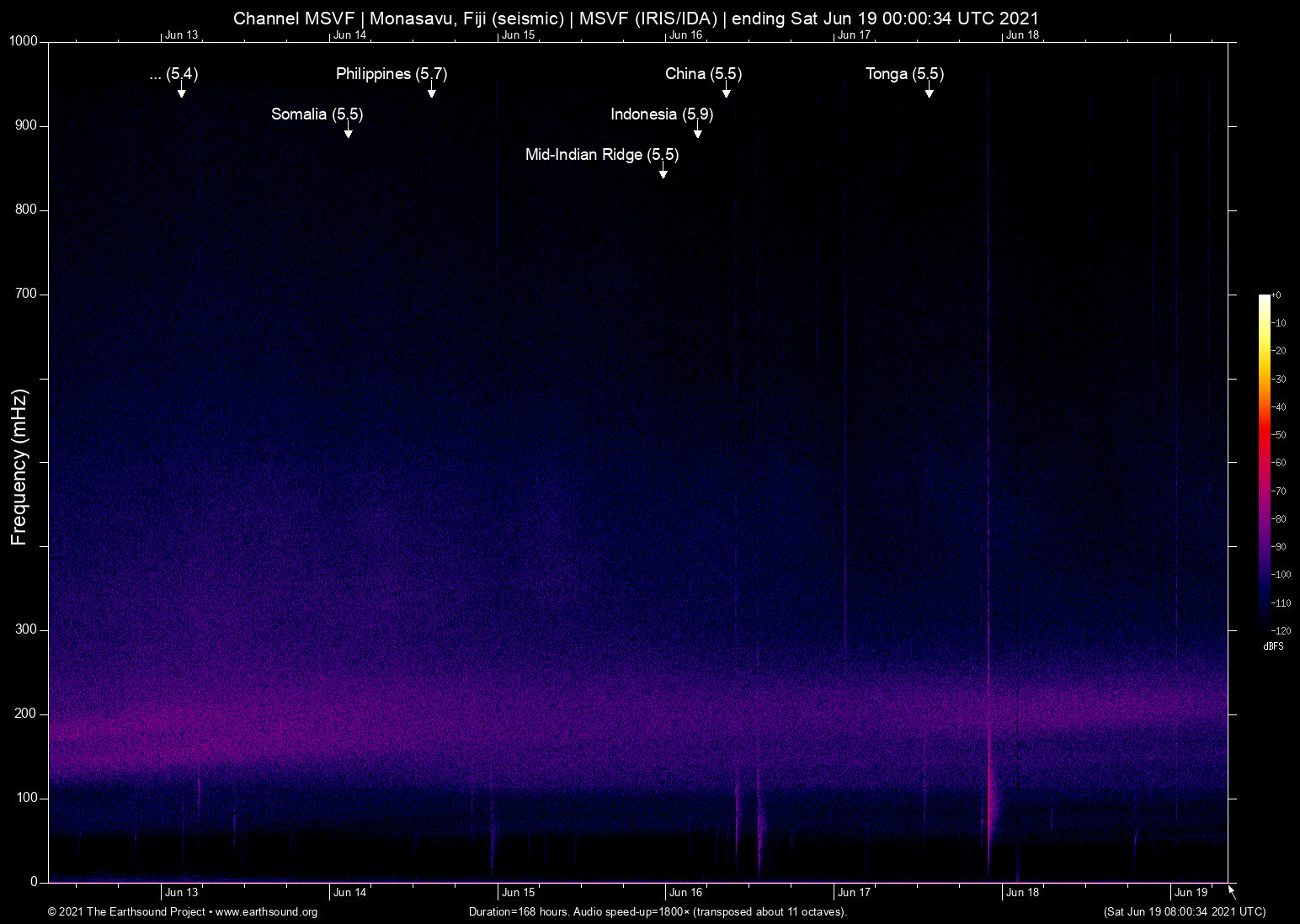 Thu Jun 17 06:41:03 2021 5.5 -172.78 -17.23 6 Tonga (178 km SE of Hihifo, Tonga)