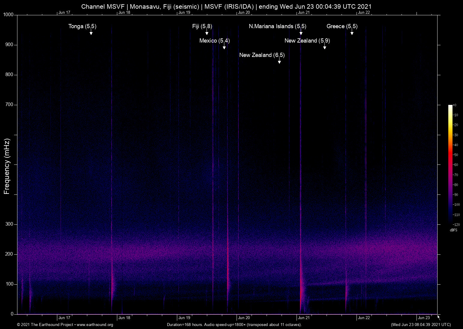 Monasavu, Fiji (seismic) archived on June 22, 2021