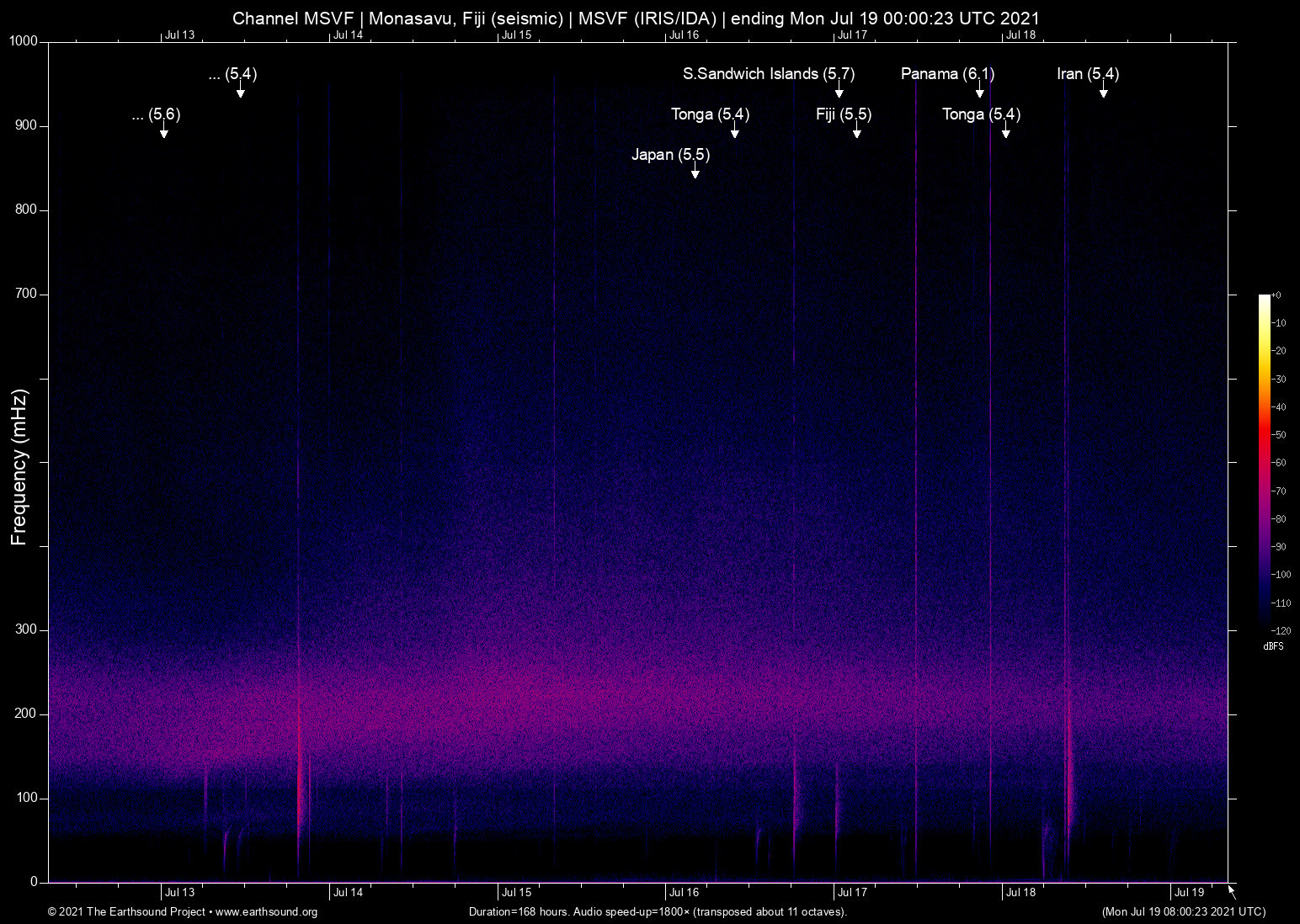 Monasavu, Fiji (seismic) archived on July 18, 2021