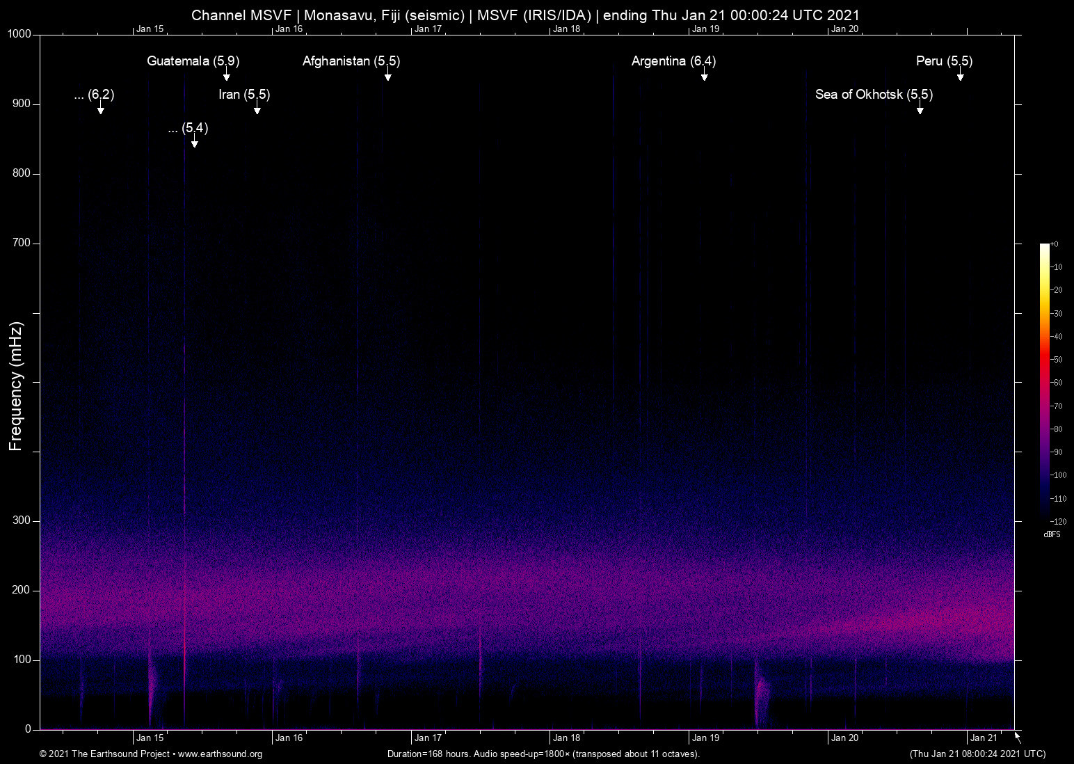 Monasavu, Fiji (seismic) archived on January 20, 2021