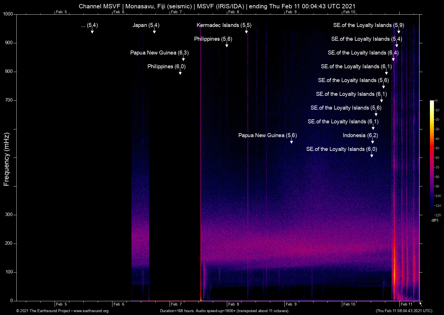 Monasavu, Fiji (seismic) archived on February 10, 2021