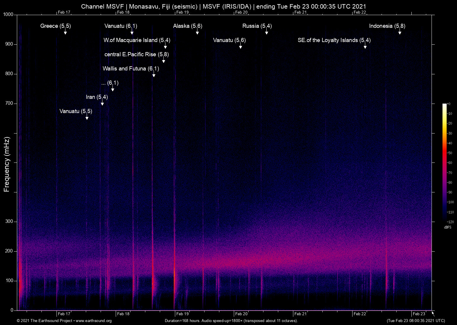 Fri Feb 19 18:44:06 2021 5.6 167.72 -17.45 6 Vanuatu (70 km WNW of Port-Vila, Vanuatu)