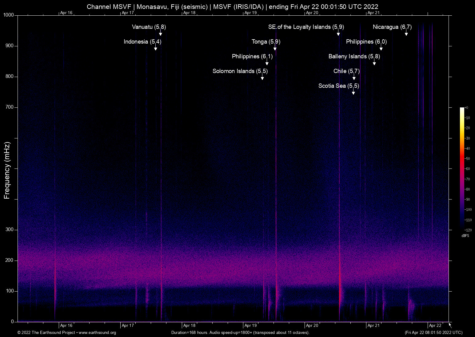 Mon Apr 18 21:33:41 2022 5.9 -173.80 -21.51 6 Tonga (120 km E of ‘Ohonua, Tonga)