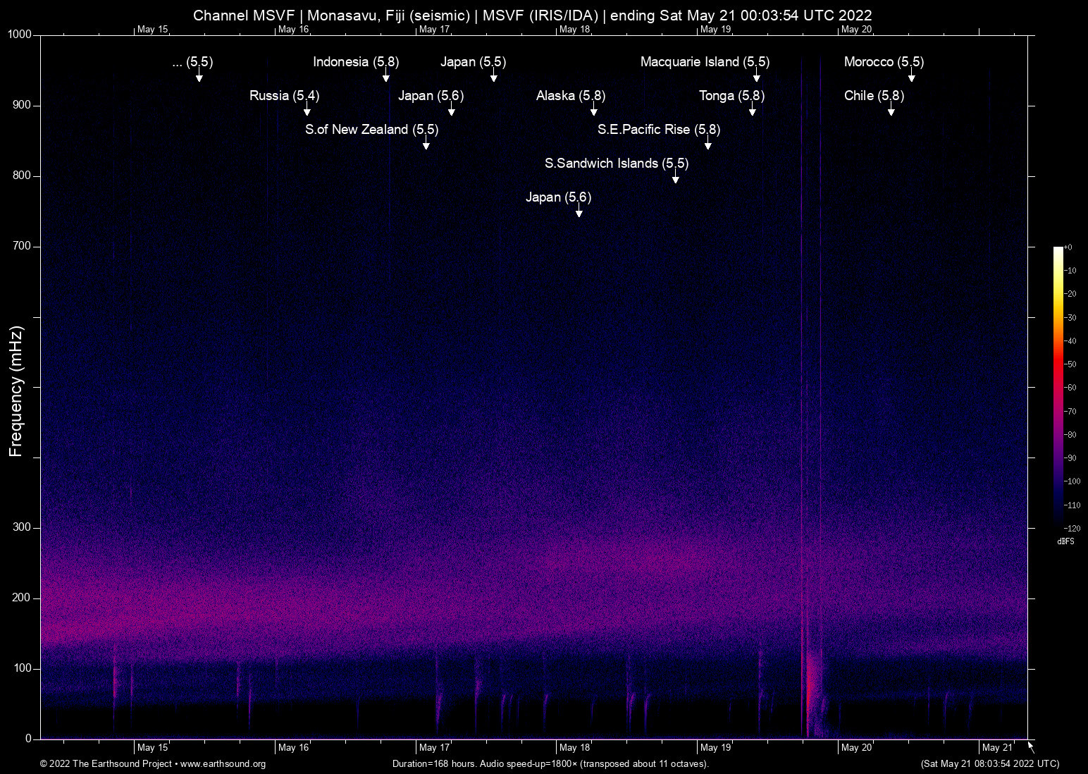 Sun May 15 22:25:53 2022 5.4 156.24 50.63 5 Russia (9 km ESE of Severo-Kuril’sk, Russia)