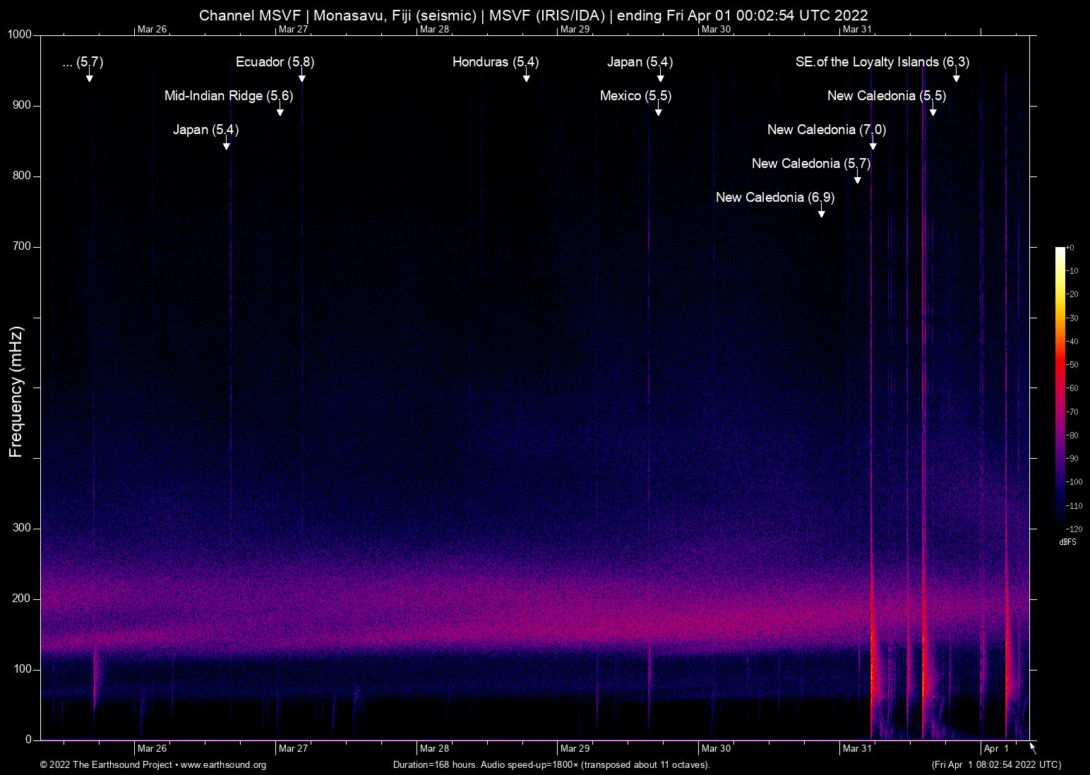 Wed Mar 30 13:56:58 2022 6.9 170.29 -22.72 7 New Caledonia (279 km ESE of Tadine, New Caledonia)