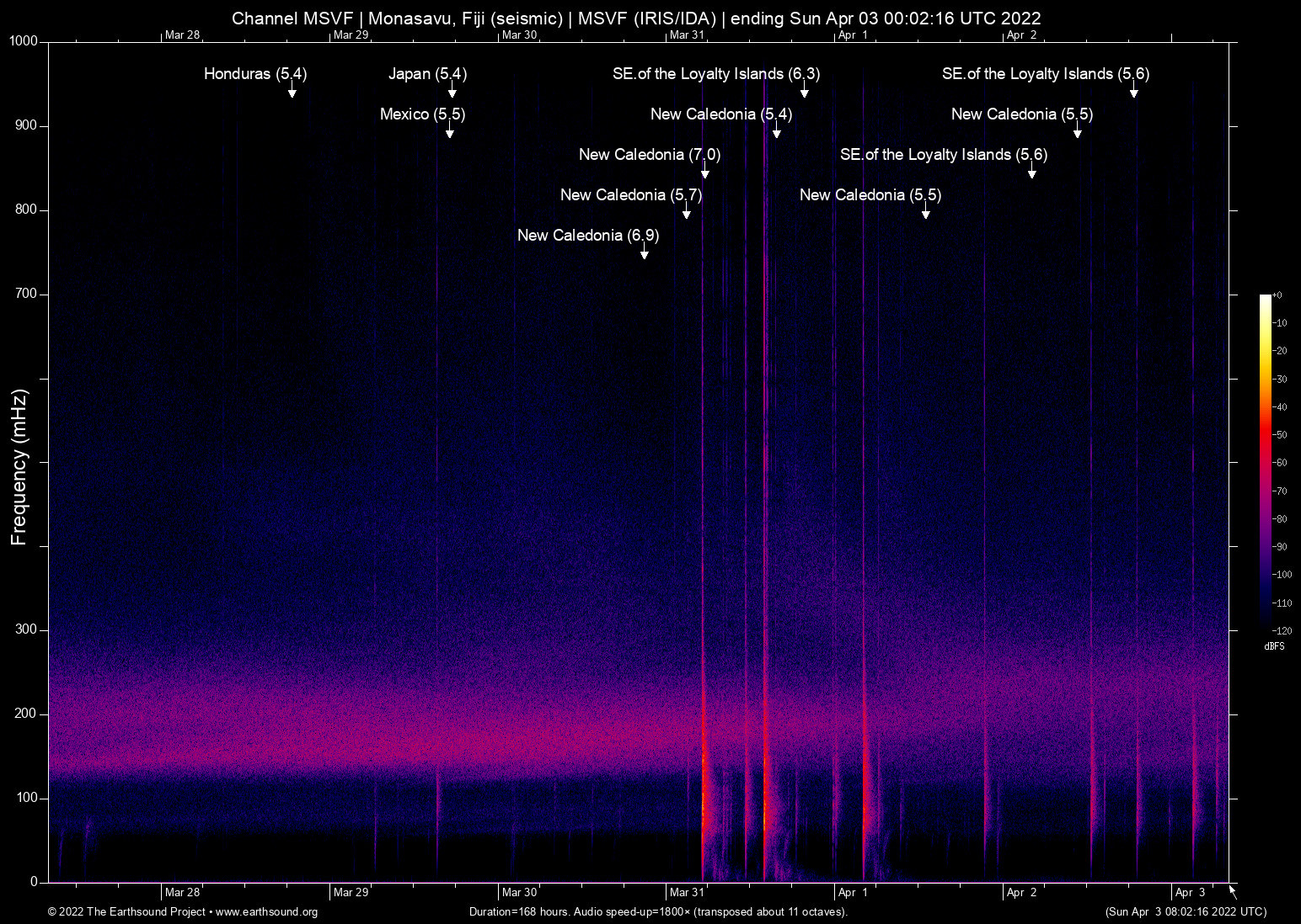 Fri Apr 1 06:05:18 2022 5.5 170.27 -22.58 6 New Caledonia (271 km ESE of Tadine, New Caledonia)